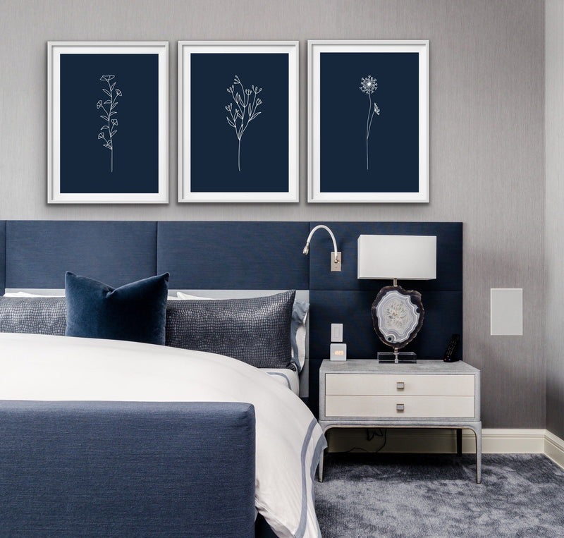 These classic navy blueprints are the perfect touch of Hamptons classic style and are perfect for coastal or city home styling.