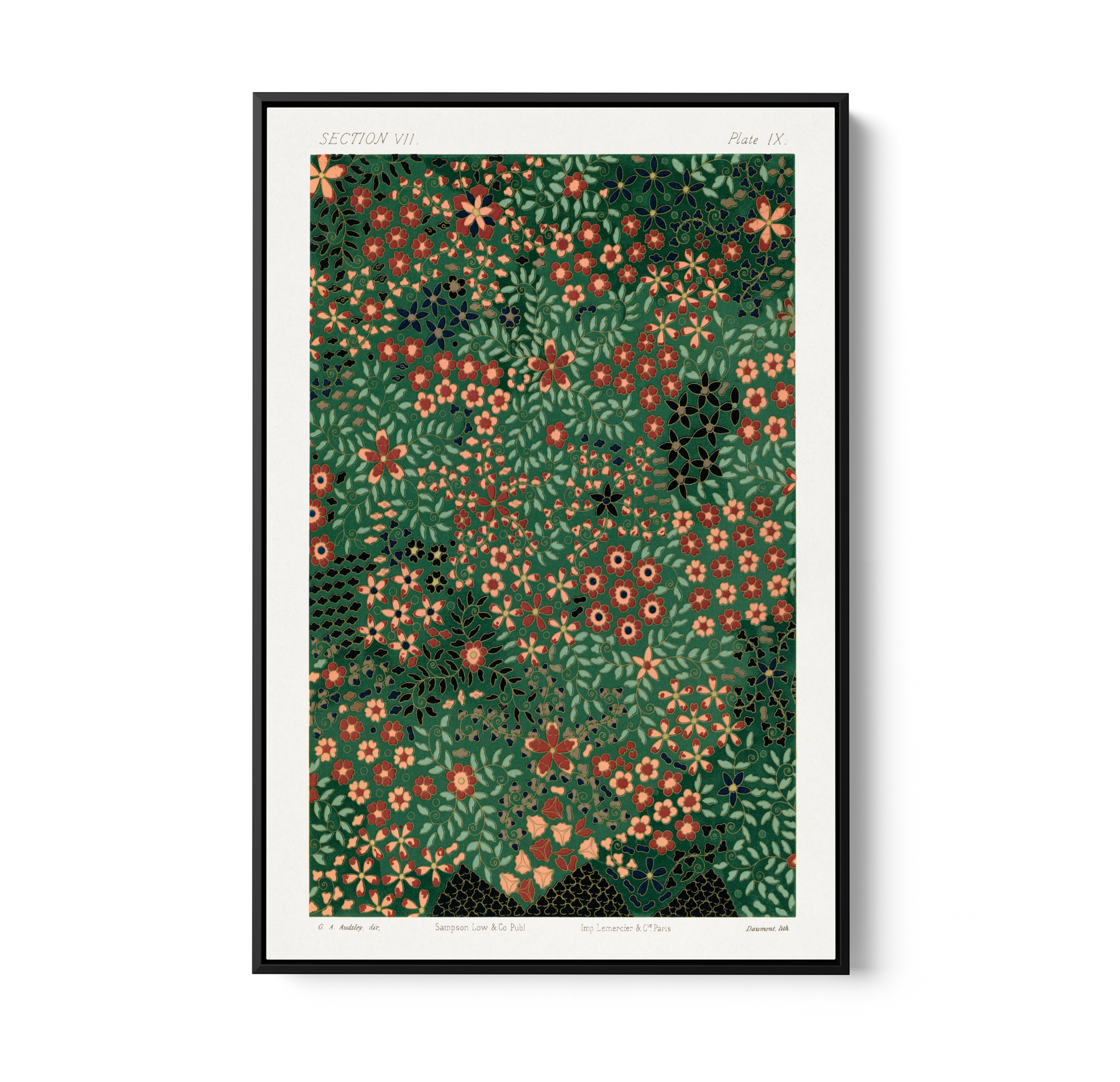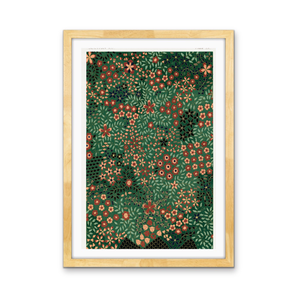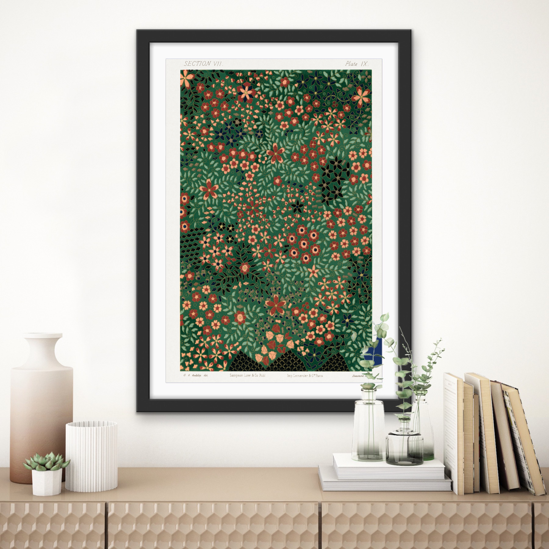 Japanese Floral Print Pattern from Section VII plate IX. by G.A. Audsley-Japanese. Original 1884 edition of The Ornamental Arts of Japan.