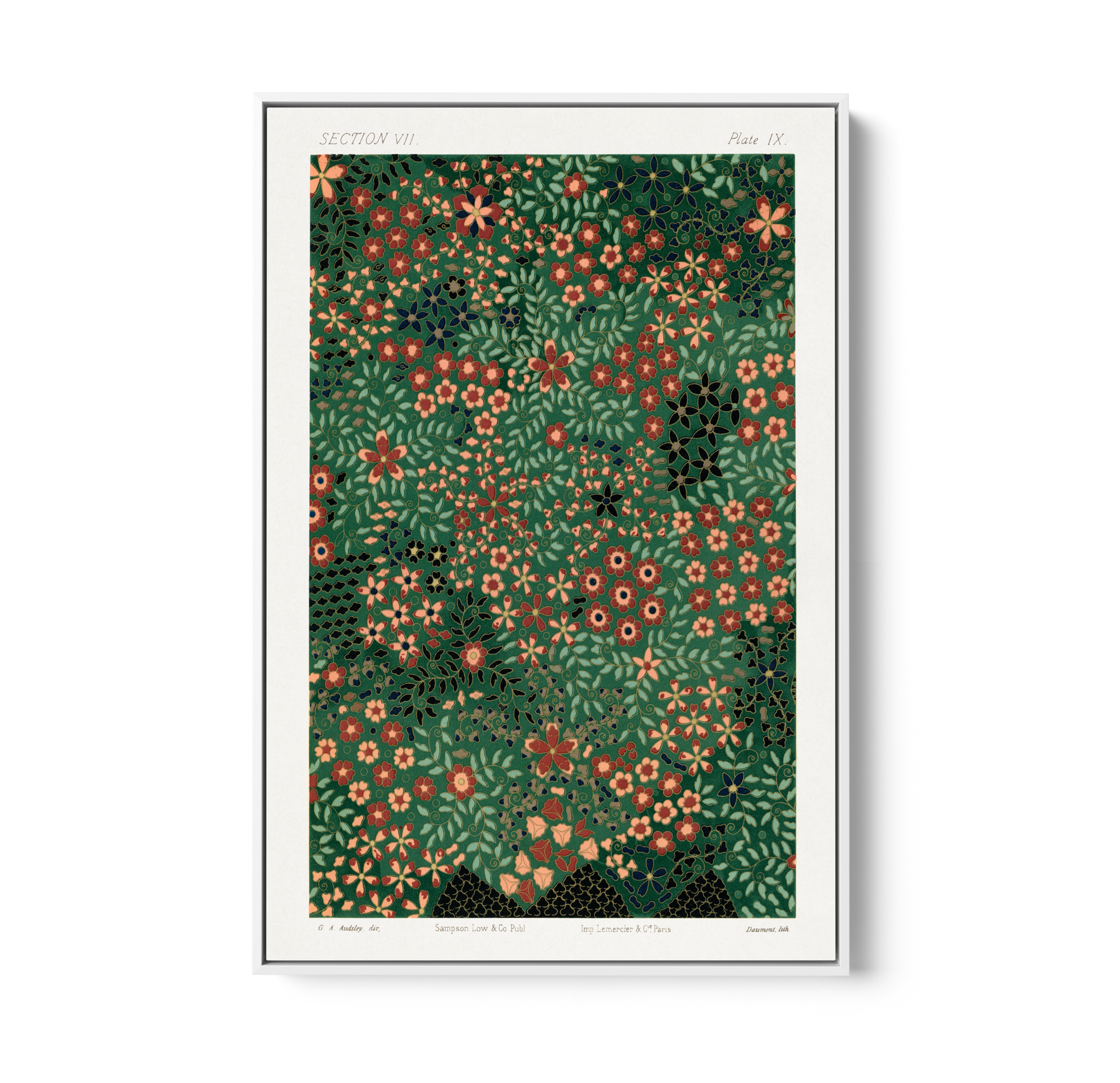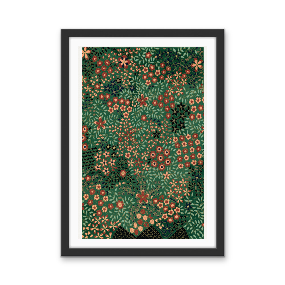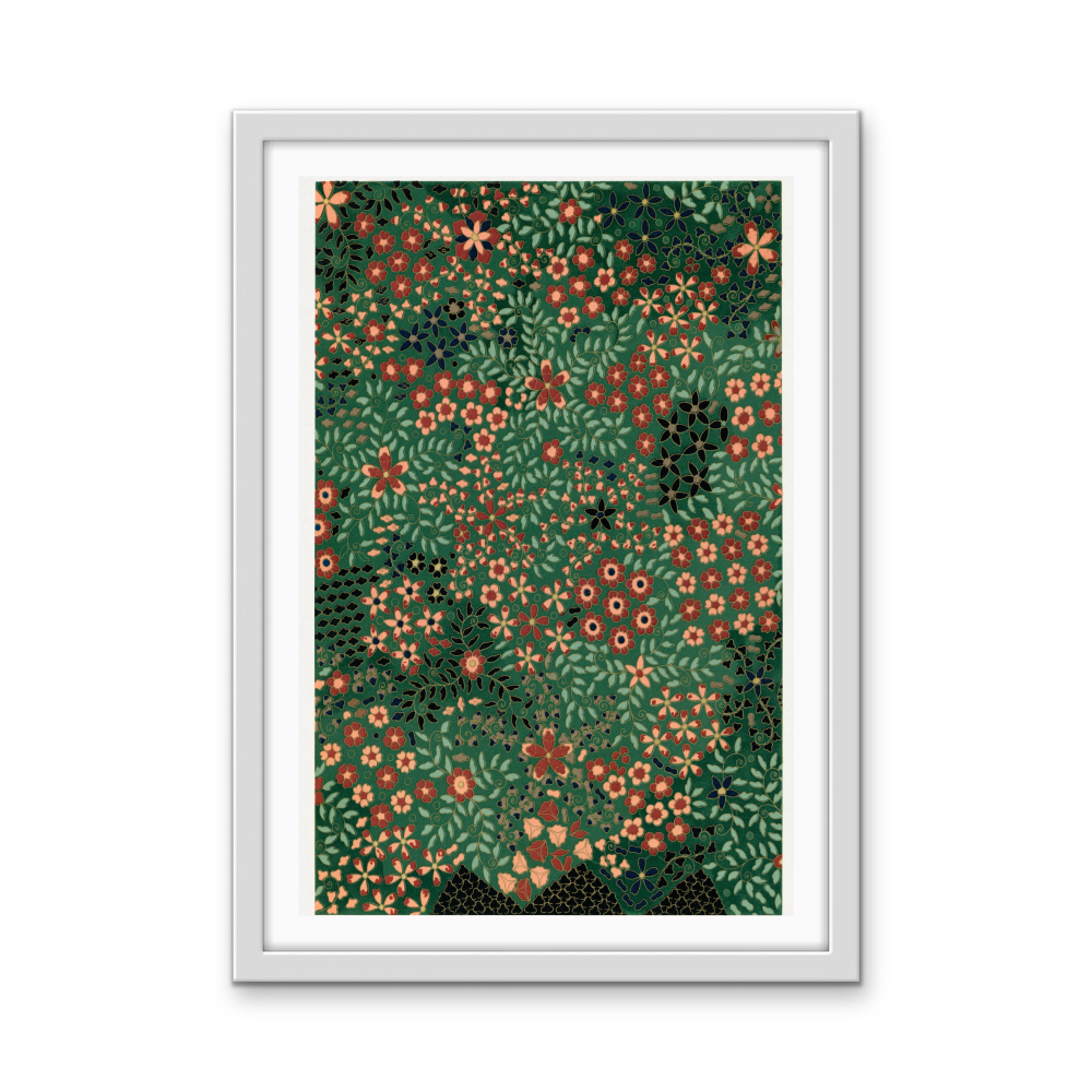 Japanese Floral Print Pattern from Section VII plate IX. by G.A. Audsley-Japanese. Original 1884 edition of The Ornamental Arts of Japan.