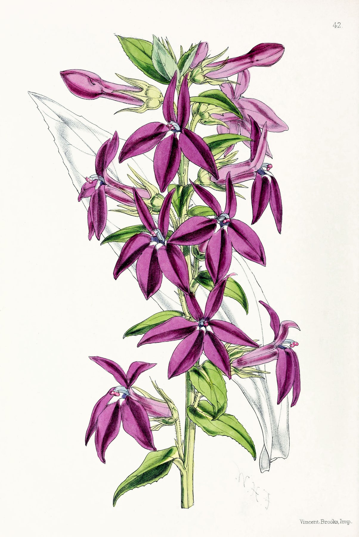 Vintage illustration of Lobelias from The Floral Magazine (1861-1881) by Worthington G. Smith, John N. Fitch and Walter H. Fitch.