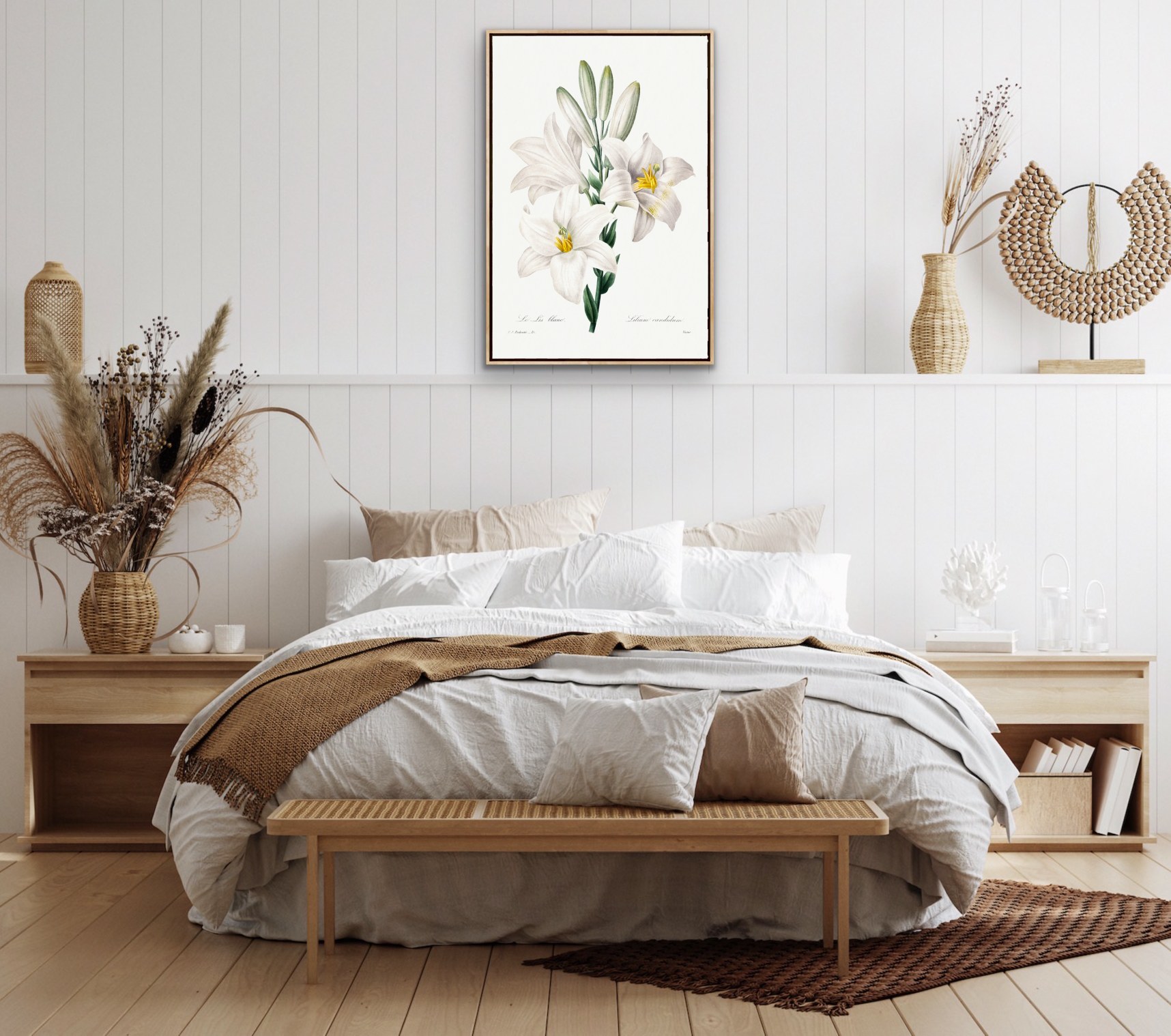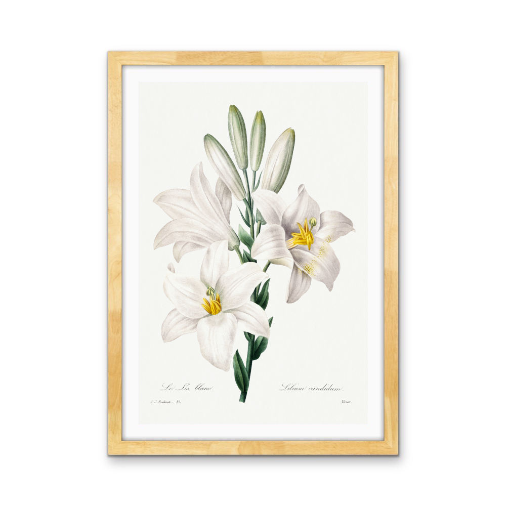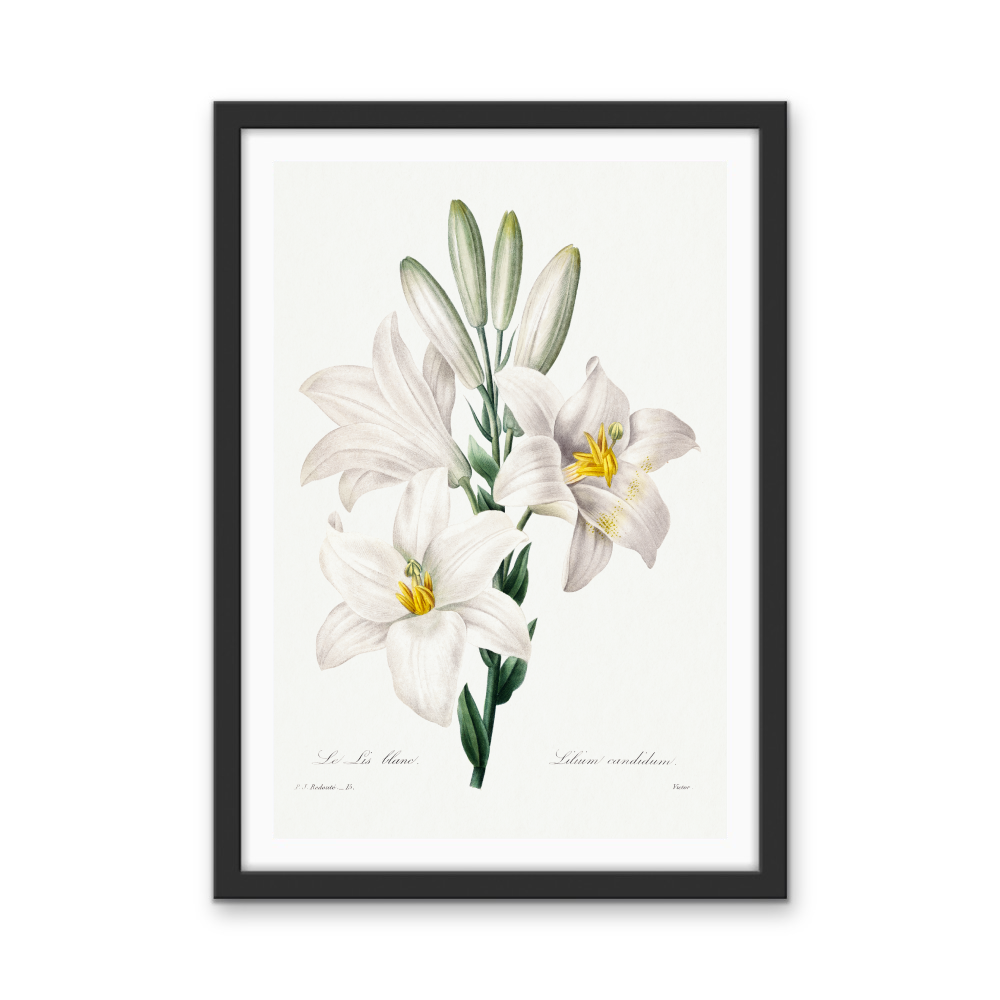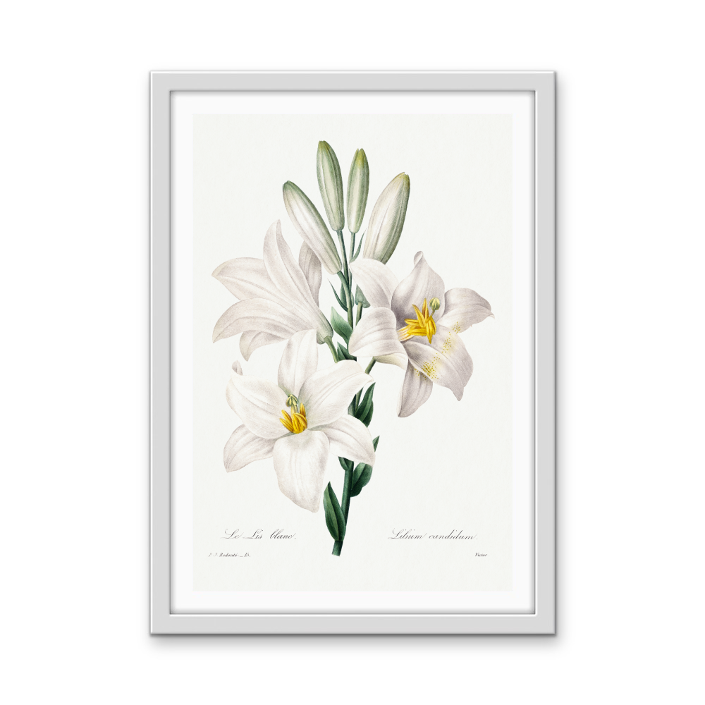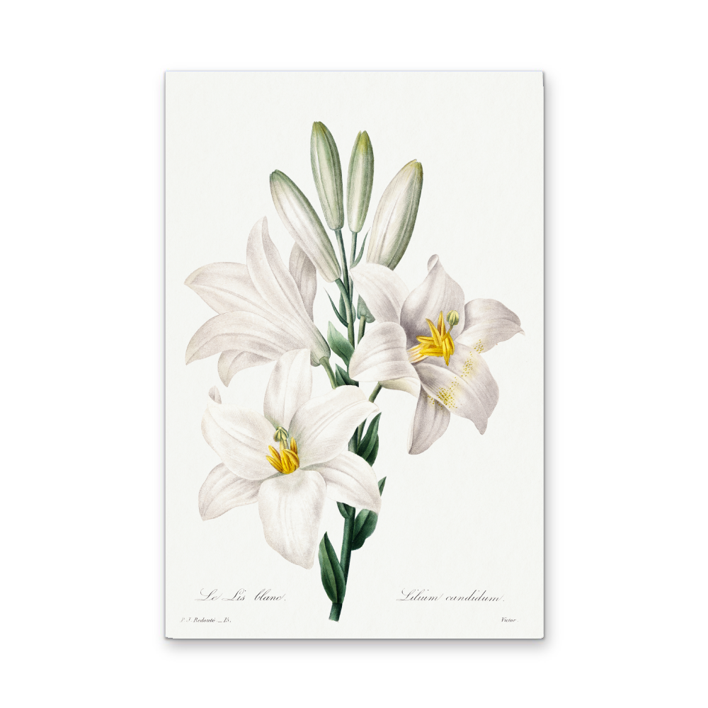 Madonna Lily from Choix Des Plus Belles Fleurs (1827) by Pierre-Joseph Redouté. Original from Biodiversity Heritage Library.
