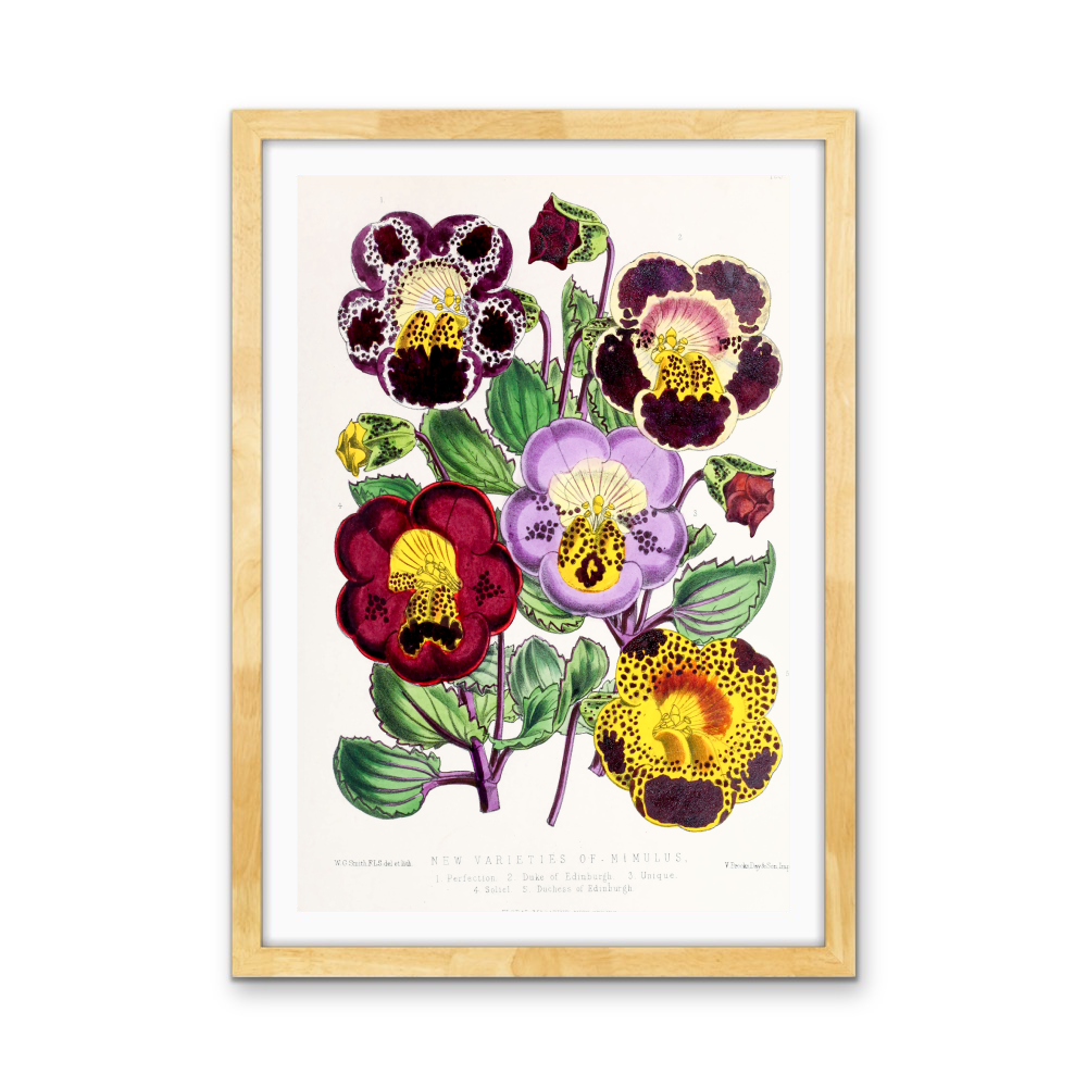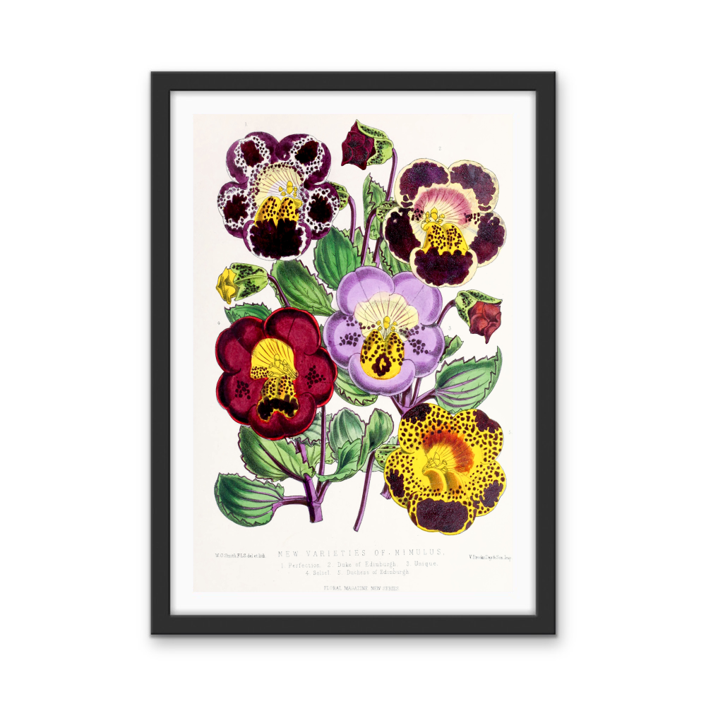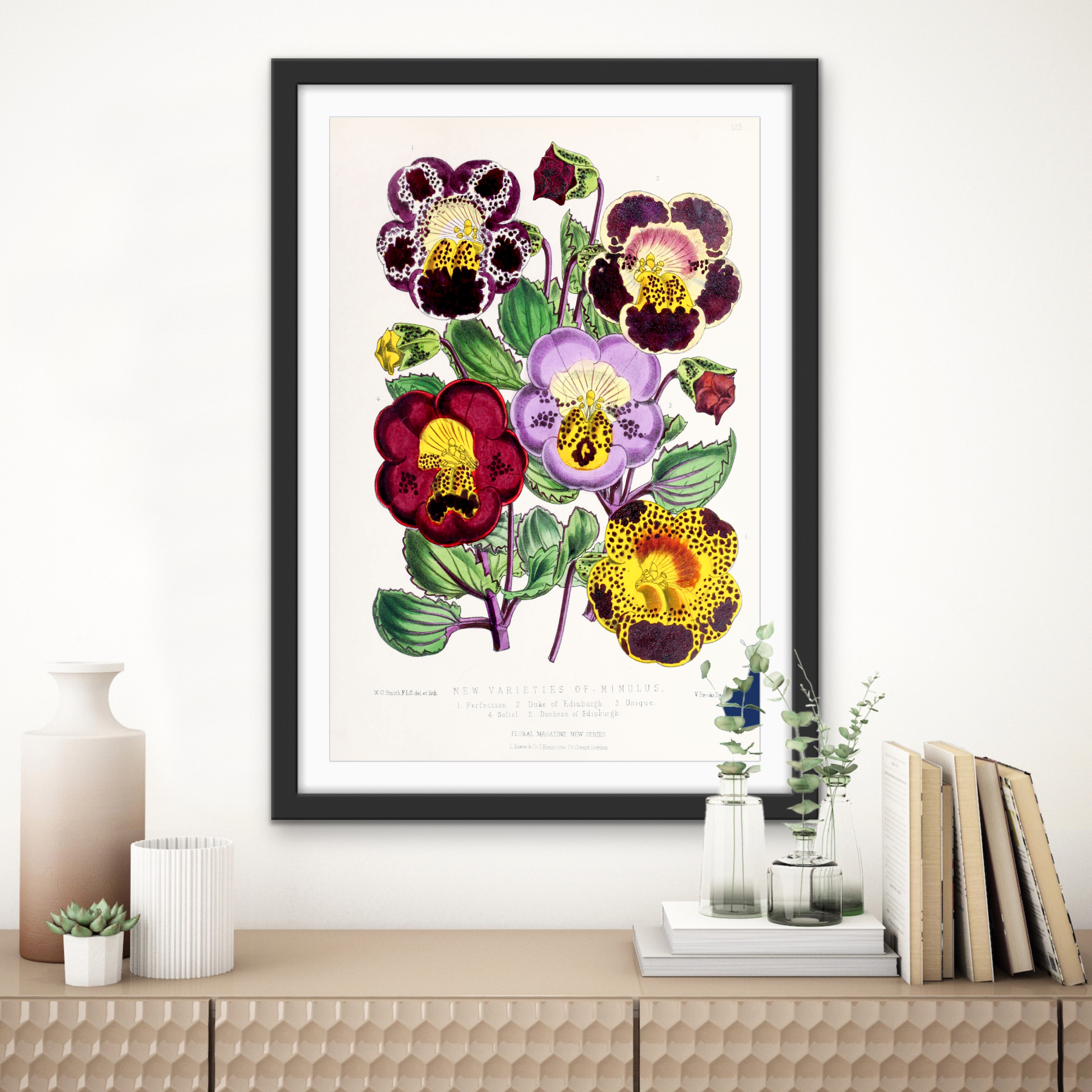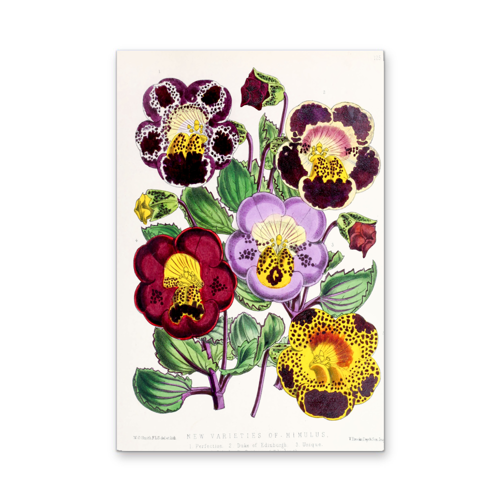 Vintage illustration of Mimulus or Monkeyflowers from The Floral Magazine (1861-1881) by Worthington G. Smith, John N. Fitch and Walter H. Fitch.