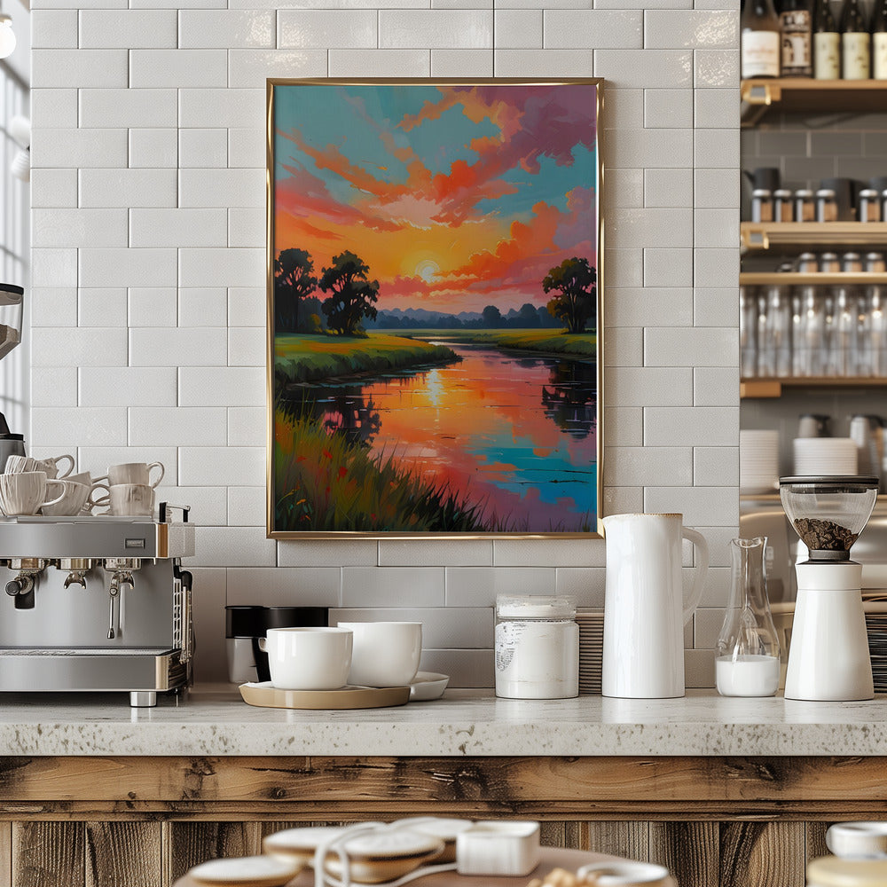 Explore our many print options for Sunset By the River by artist Kintsugi99.
