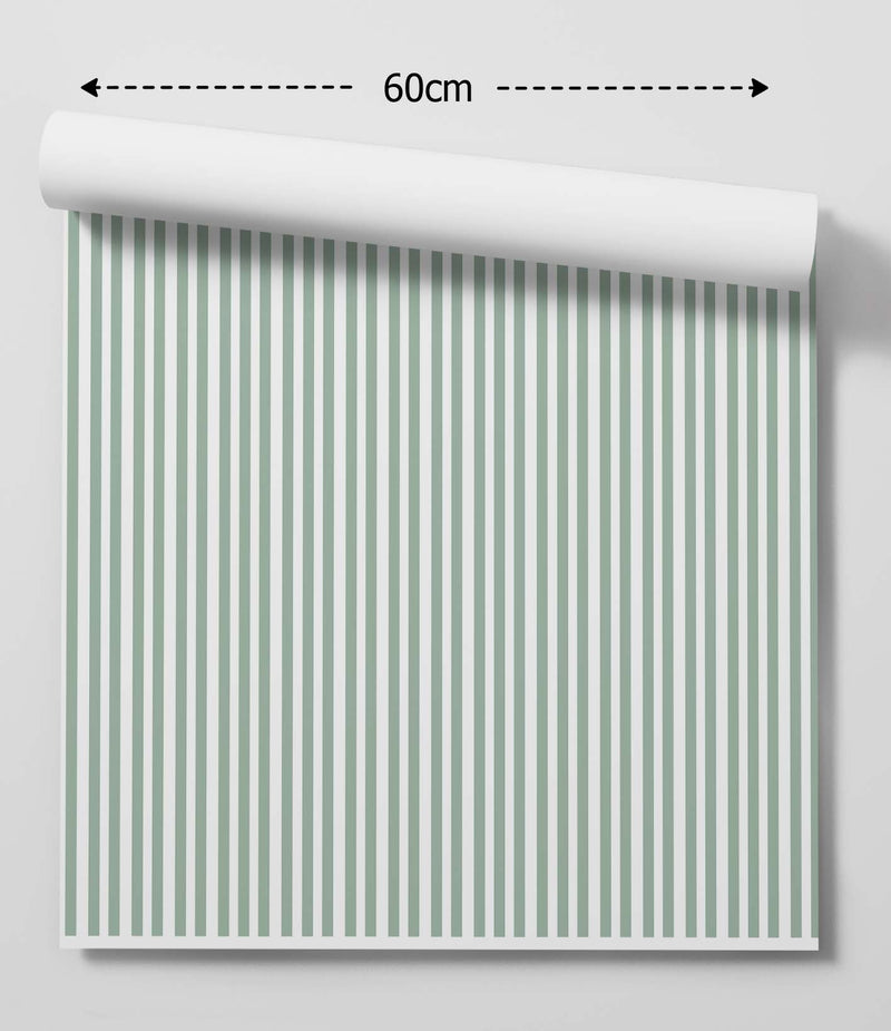 Green Pinstripe - Thin Stripe Green and White Wallpaper