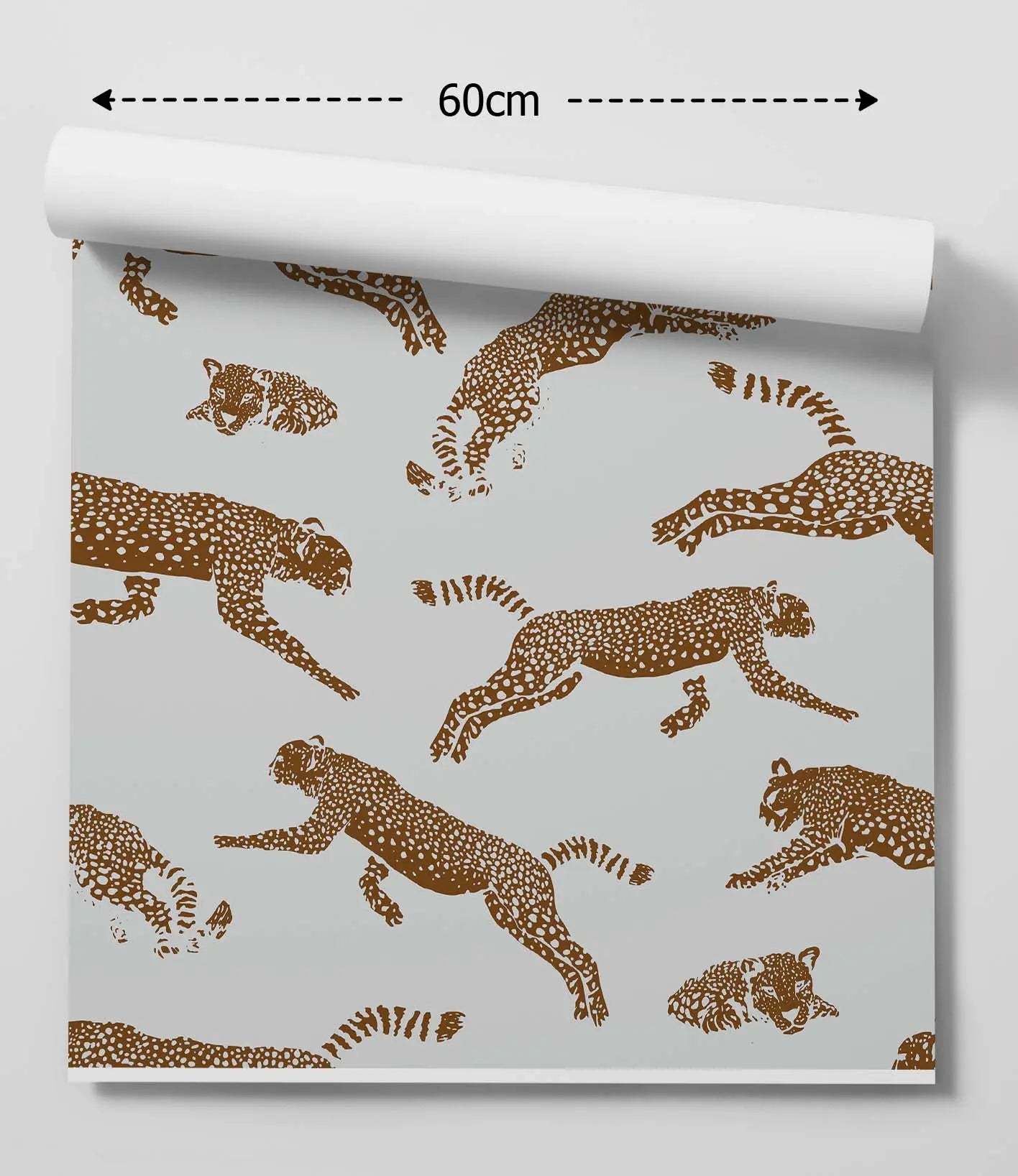 A fun contemporary wallpaper pattern featuring a leaping leopard.