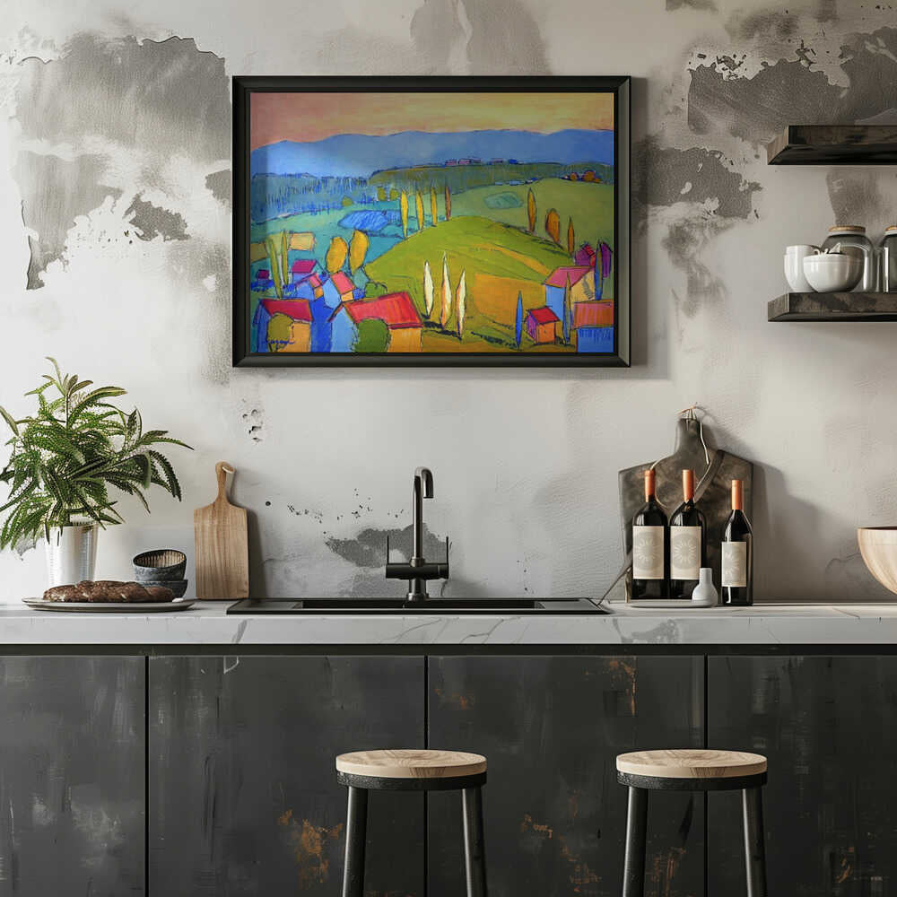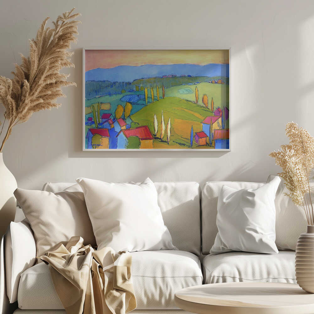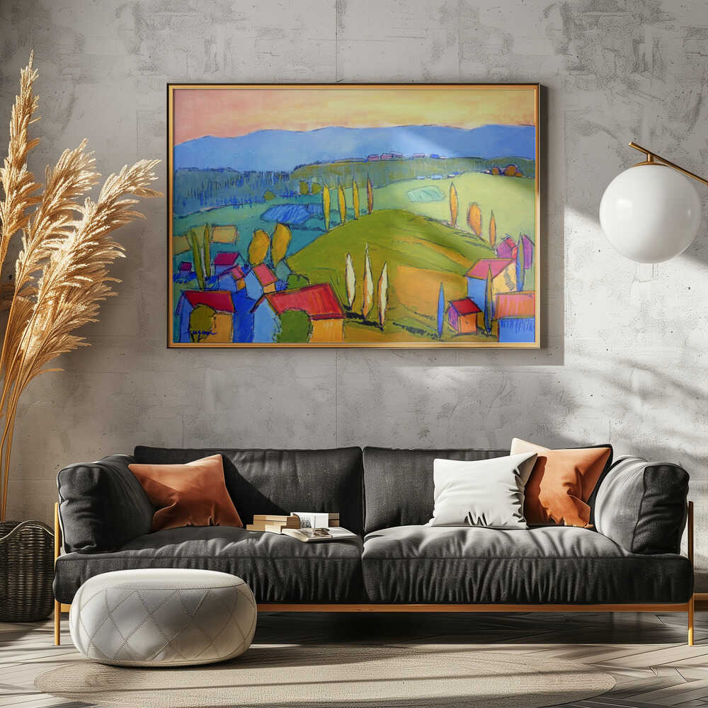 Colorful Hillscape - Stretched Canvas, Poster or Fine Art Print