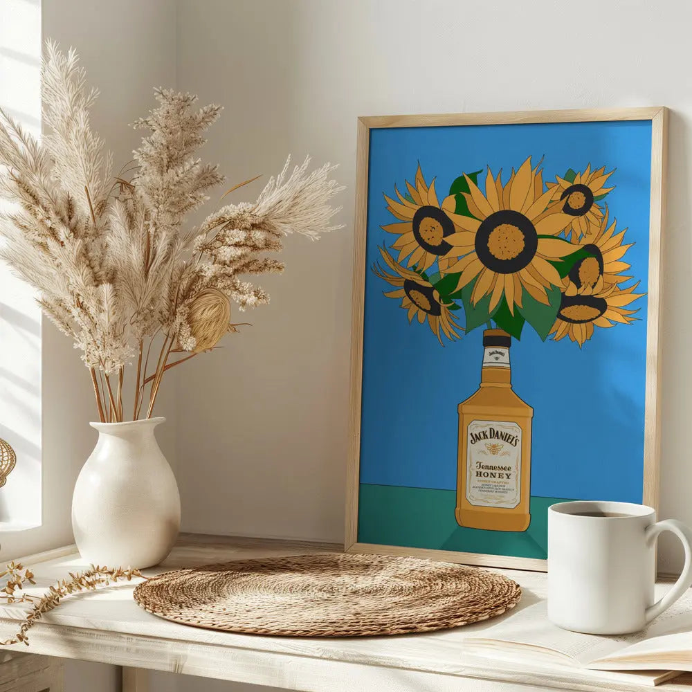 Explore our many print options for Sunflowers in Honey Whiskey Retro Illustration by artist Retrodrome.