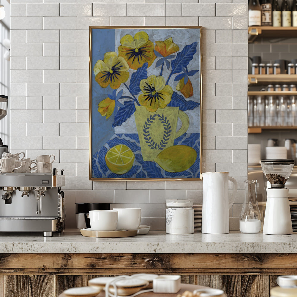 Explore our many print options for Yellow Pansies And Lemons by artist Susan Black.