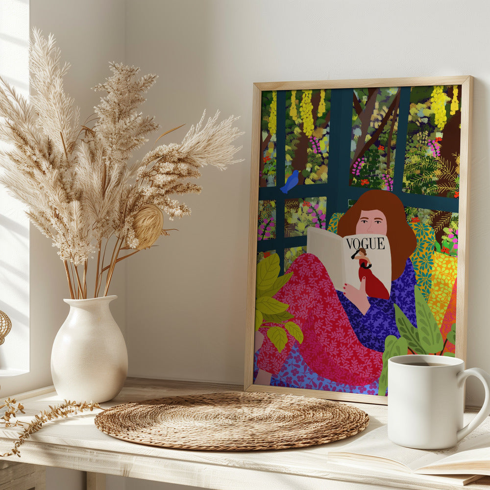 Explore our many print options for 9933x14043 Din 129 Reading My Favorite Magazine by artist Rafaela Mascaro.
