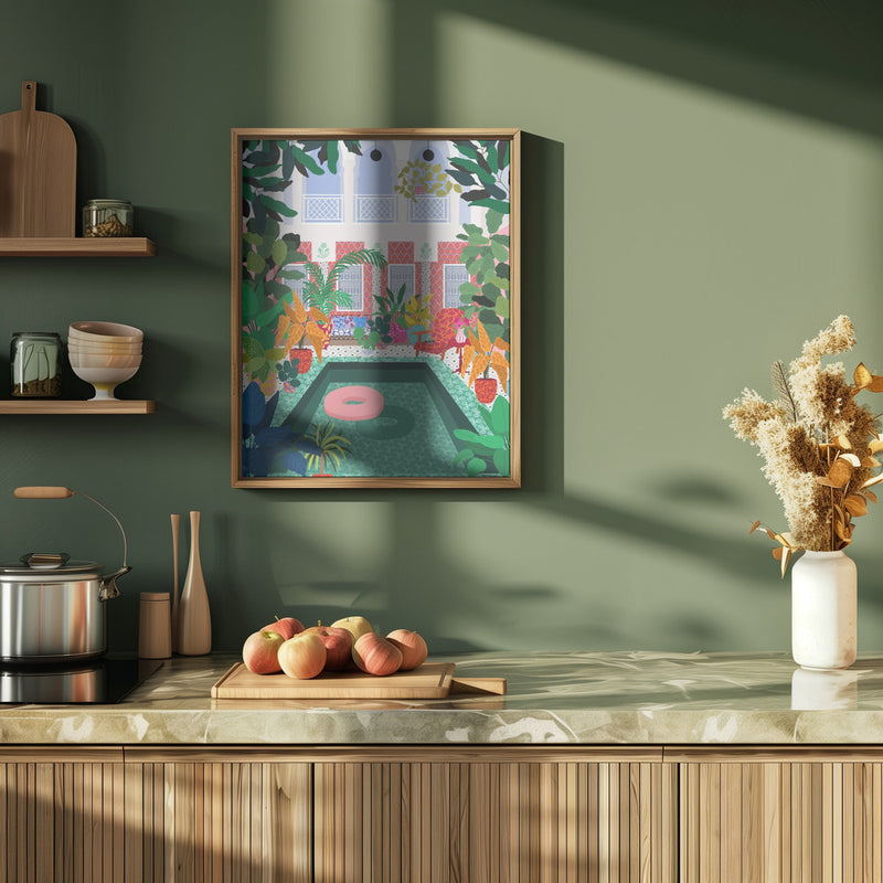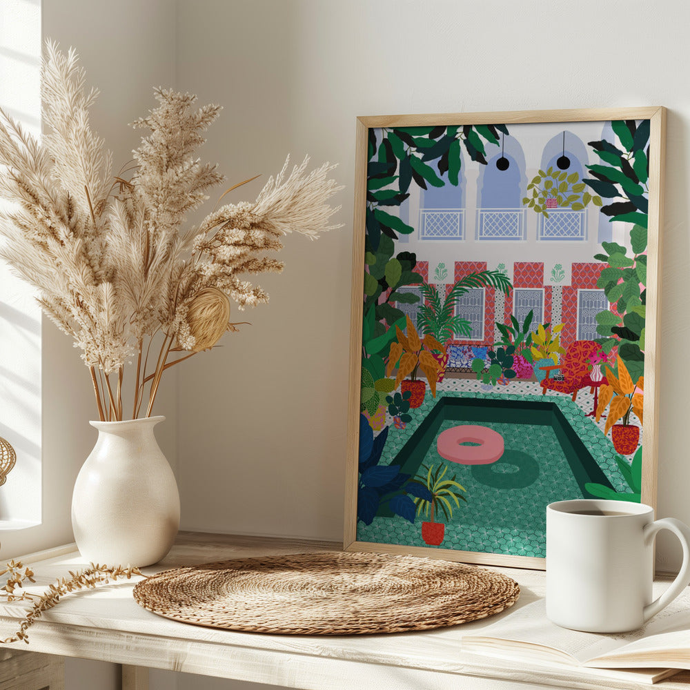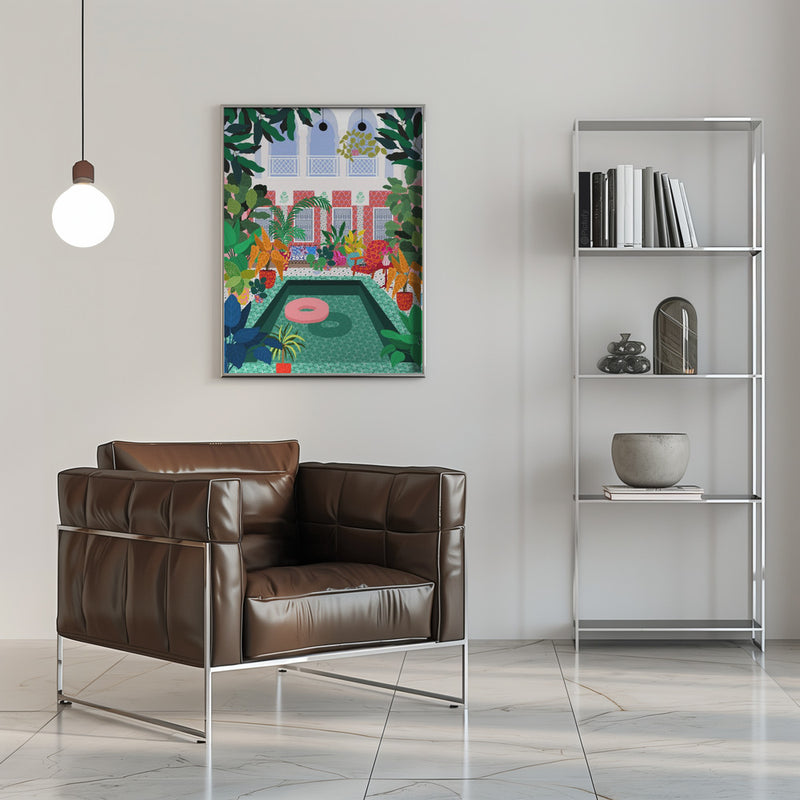 Explore our many print options for 9933x14043 Din 131 Enjoying the Pool by artist Rafaela Mascaro.