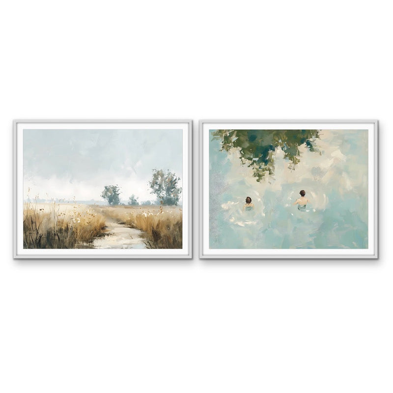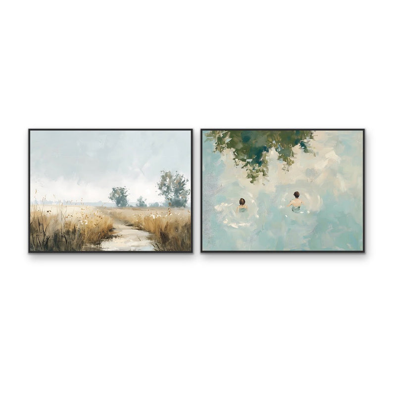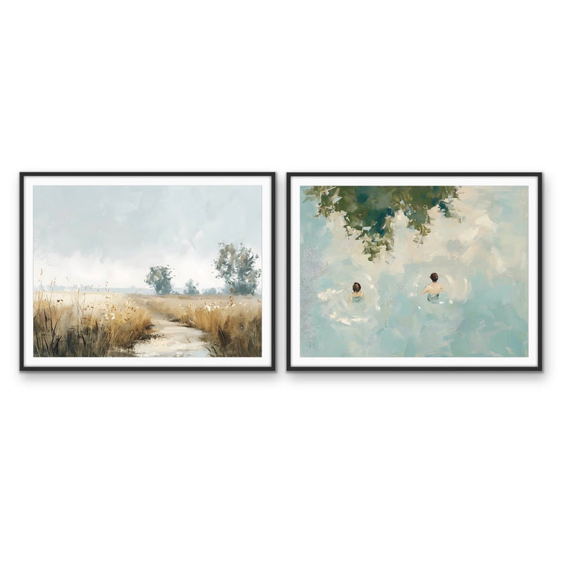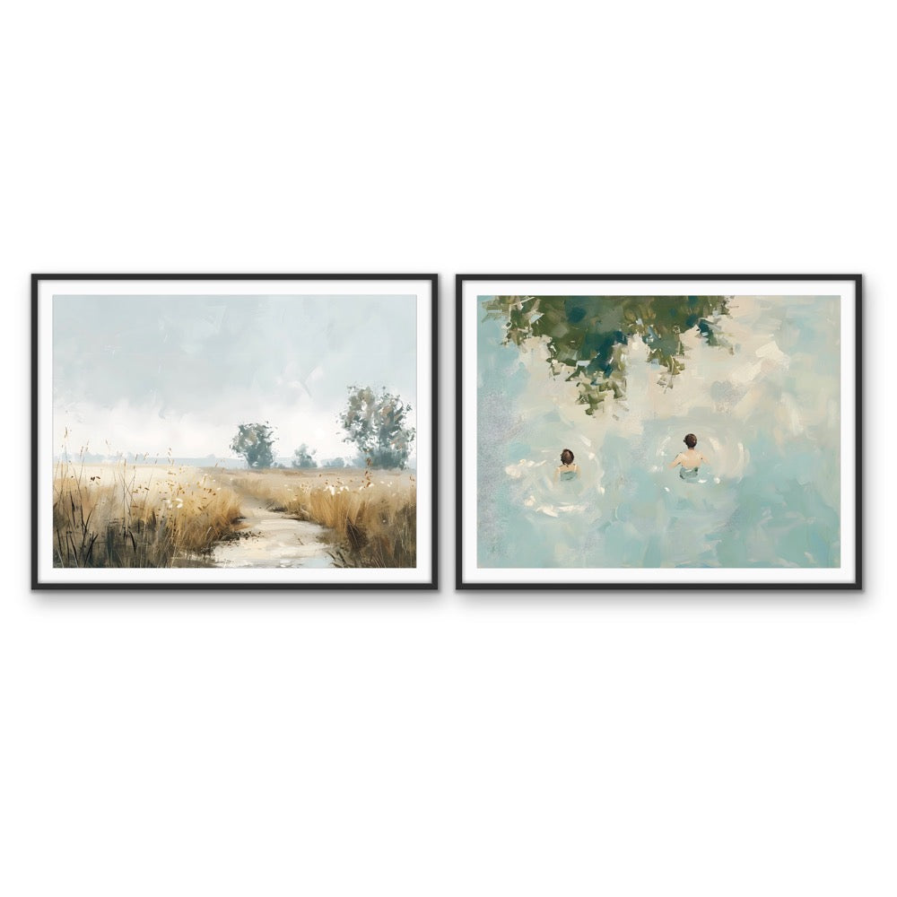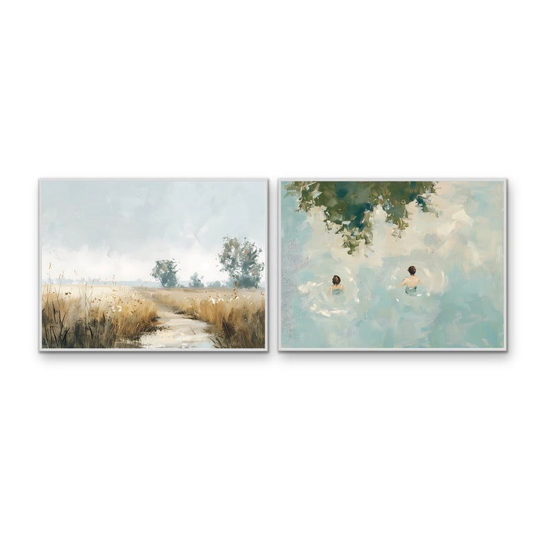 Get reeled into this beautiful two piece set, telling a story while displaying soft and calming colours.