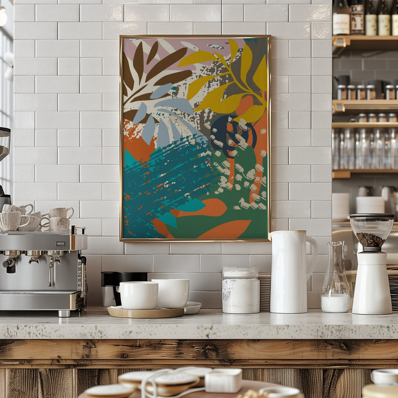 Framed Art Prints: Our framed art prints are printed onto a good quality textured art paper. A white border surrounds the design. A solid timber frame in one of four colours and a plexiglass front complete the piece.