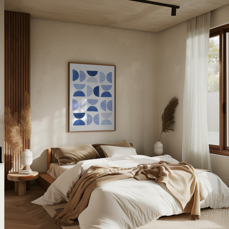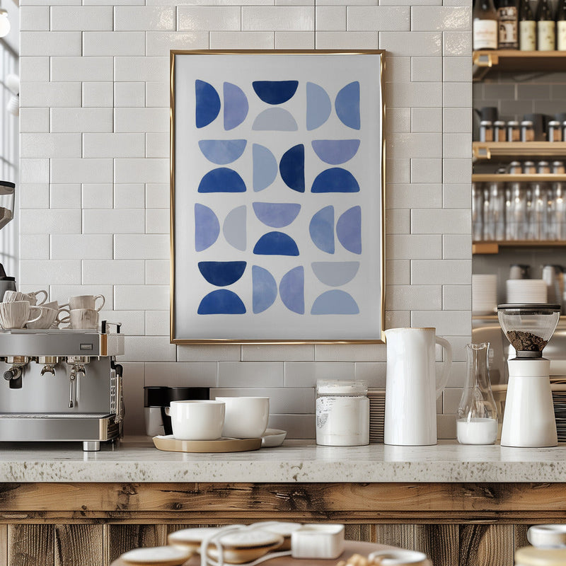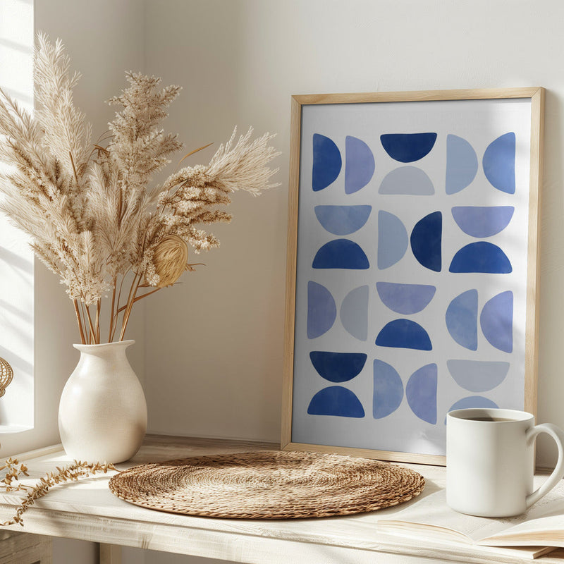 Explore our many print options for Blue Geometric Dance by artist Elena Ristova.