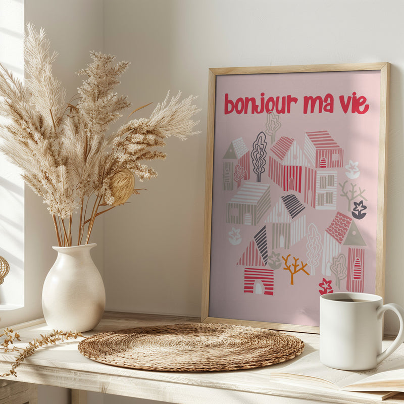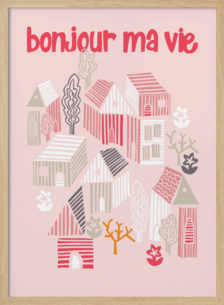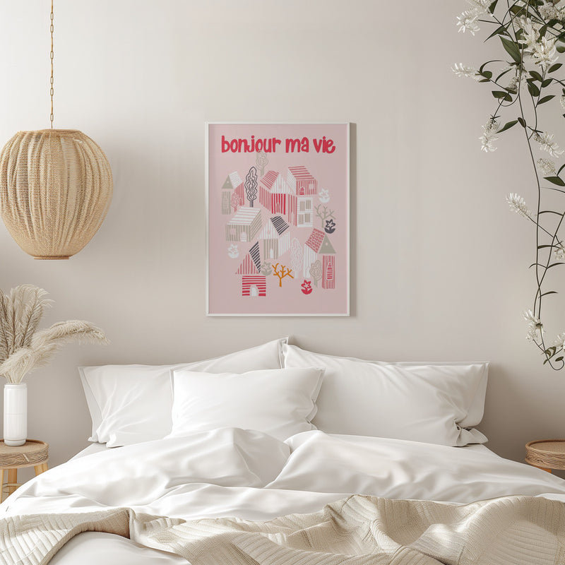 Explore our many print options for bonjour ma vie; City life collection pearl pink by artist Annick.
