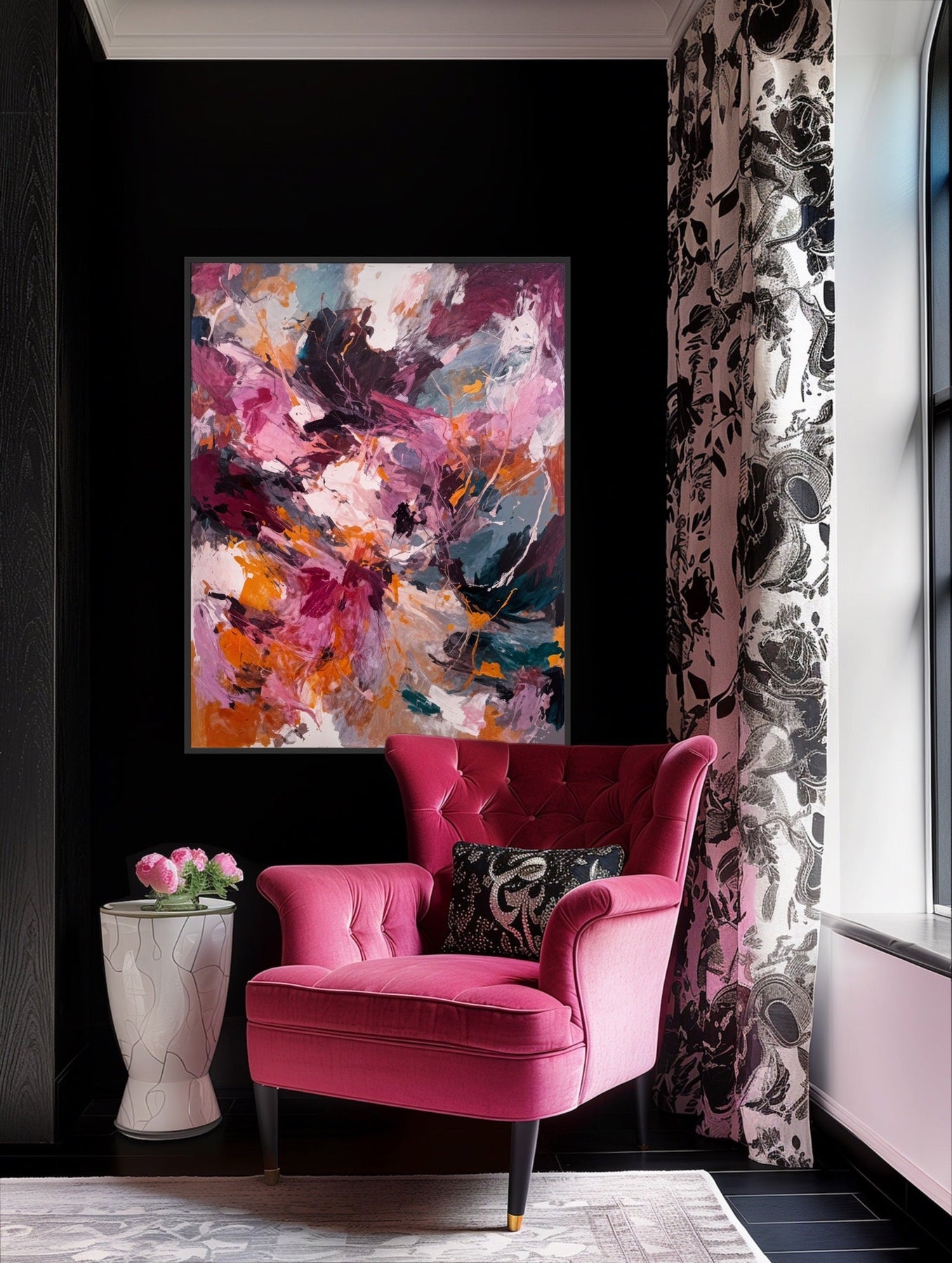 Dive into the dark pink and other gorgeous tones of the 'Burgundy Love' print.