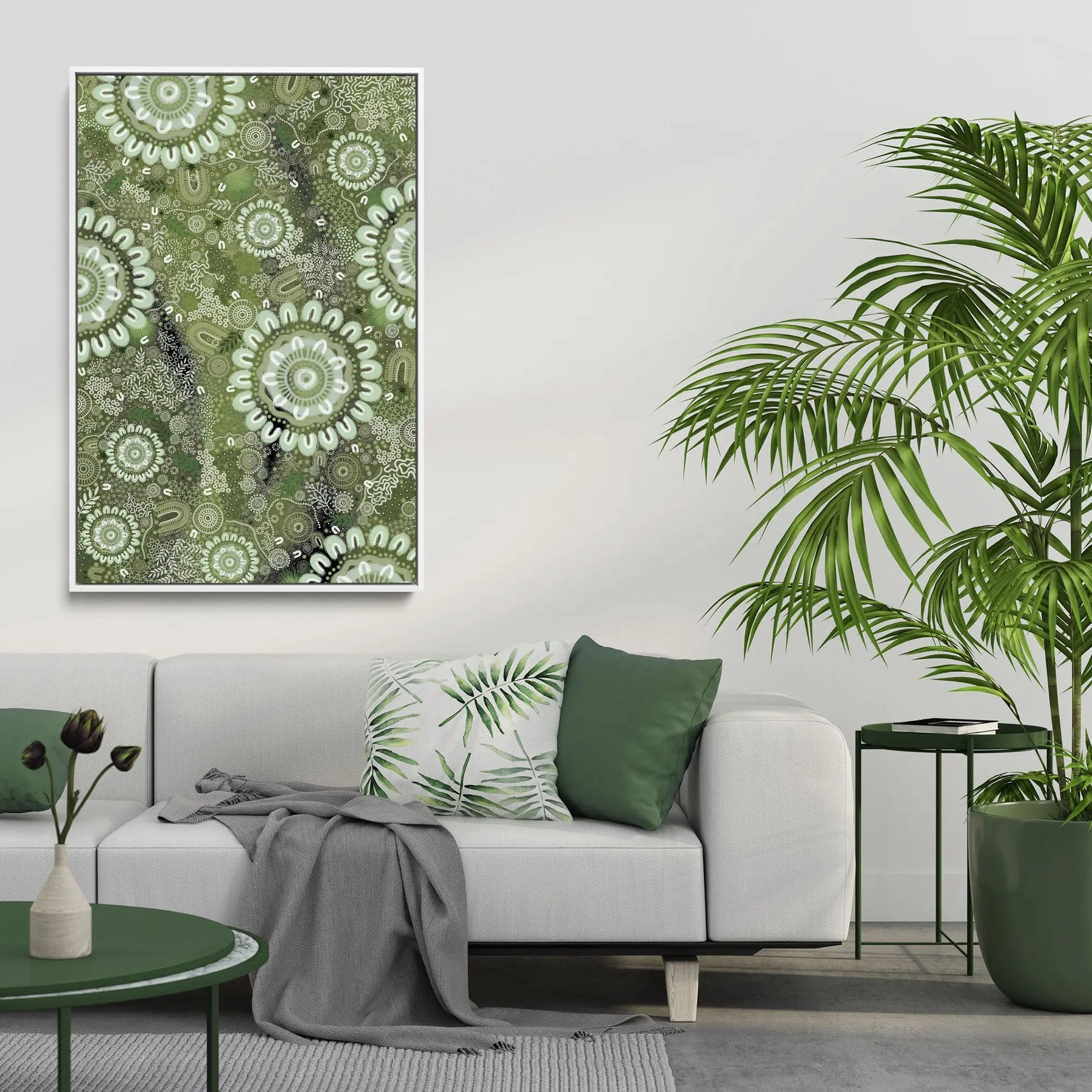 Canobie is central to my people where 6 sub tribes came together to live on and near the Pimurra river. The land tells stories as old as the time, the land is covered with native flowers and trade routes to journey from one location to another. I want to share this piece with love and harmony' - Leah Cummins.
