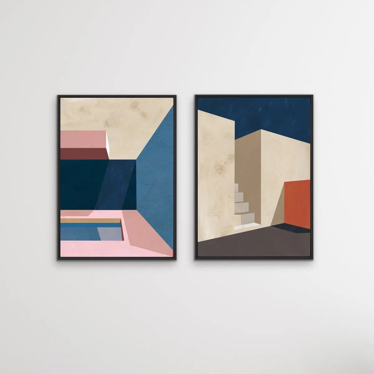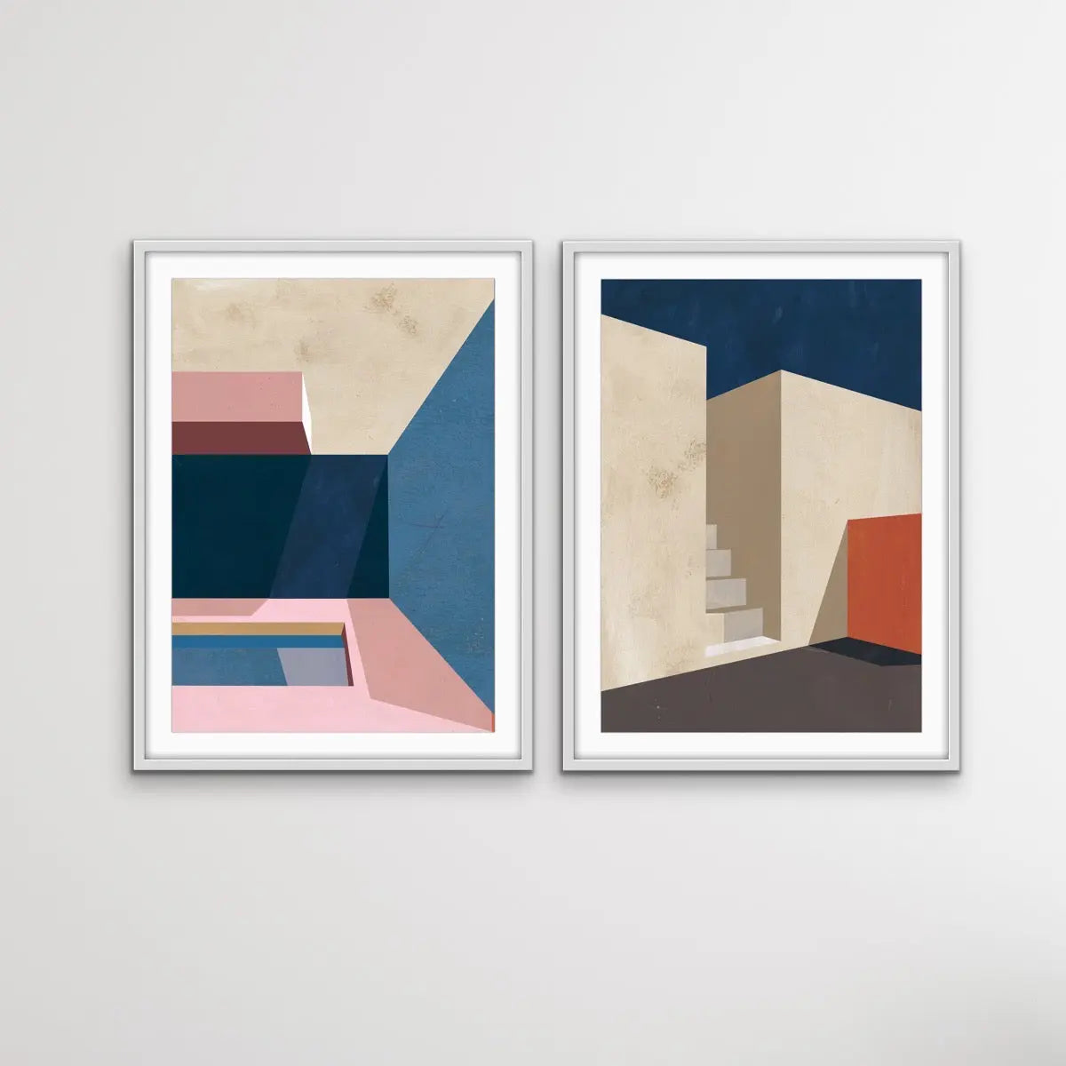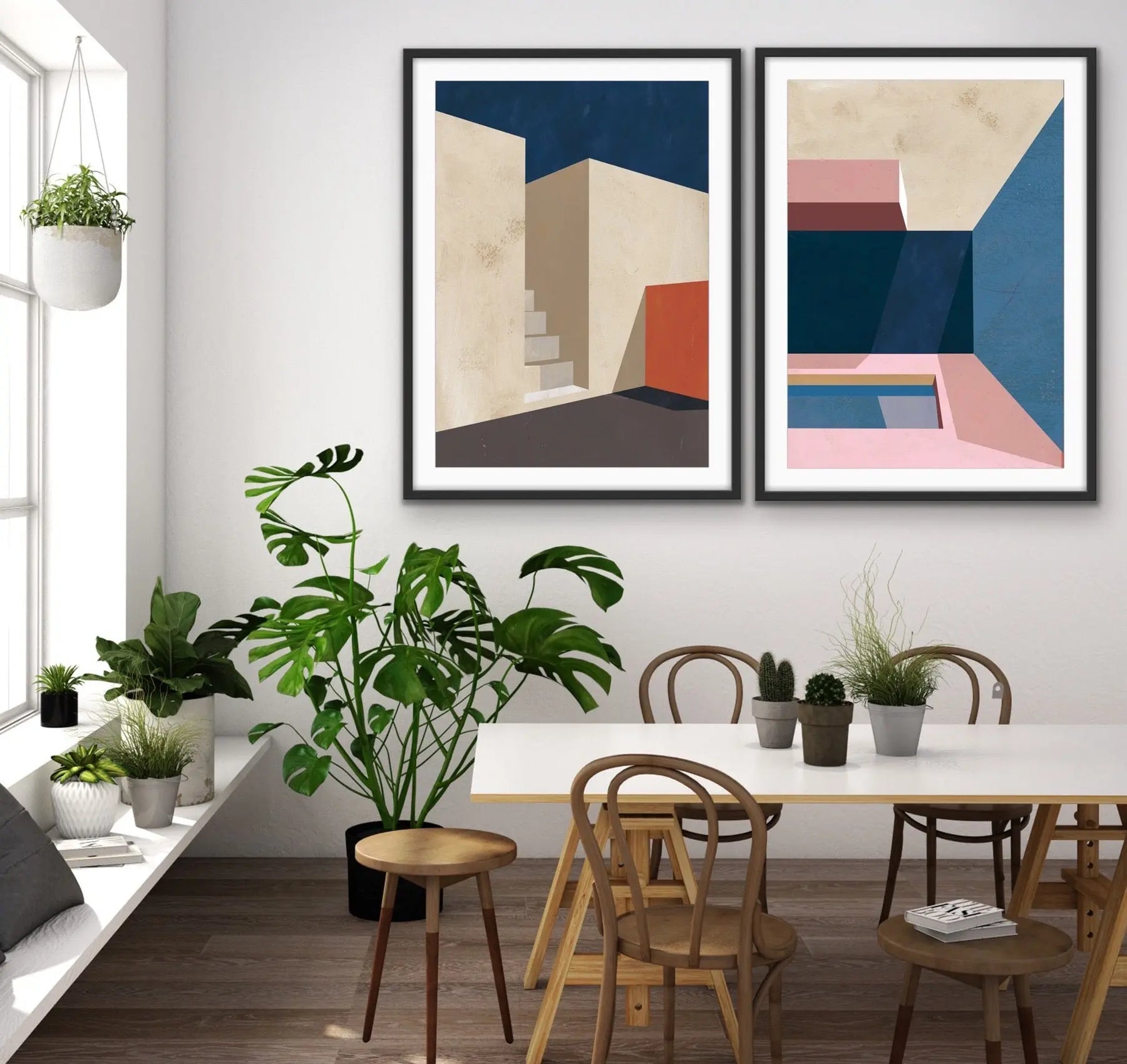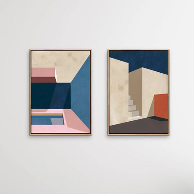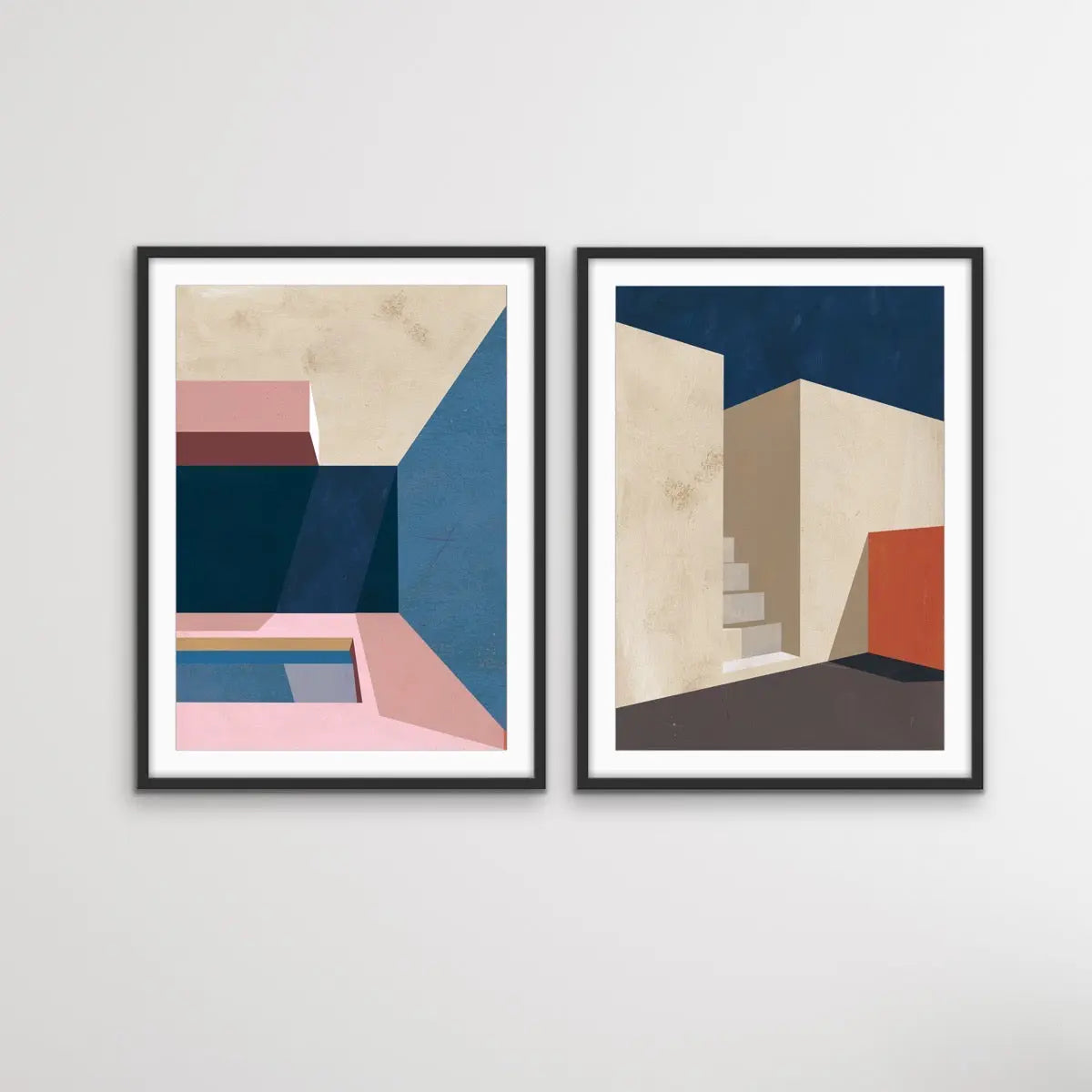 Timeless and classic, this two piece print set is features original geometric artworks with bold colours.
