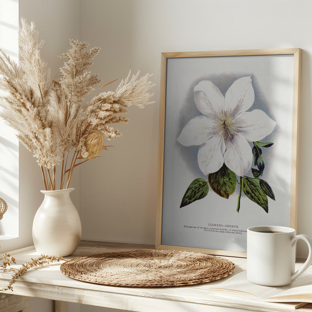 Explore our many print options for Clematis Flower Lithograph by artist Botanical Specimen Rochester Lithographing.
