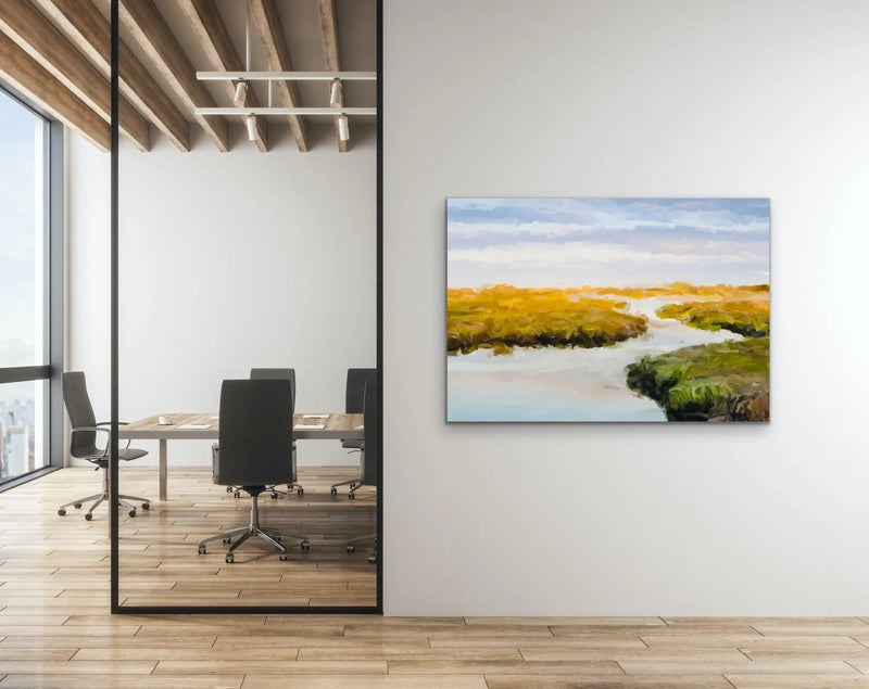This stunning new collection features evocative artworks inspired by sand dunes, marshes, and long Autumn evenings on wind-swept beaches. With natural colour schemes of yellows greens and blues, these pieces are designed to complement a range of interiors.