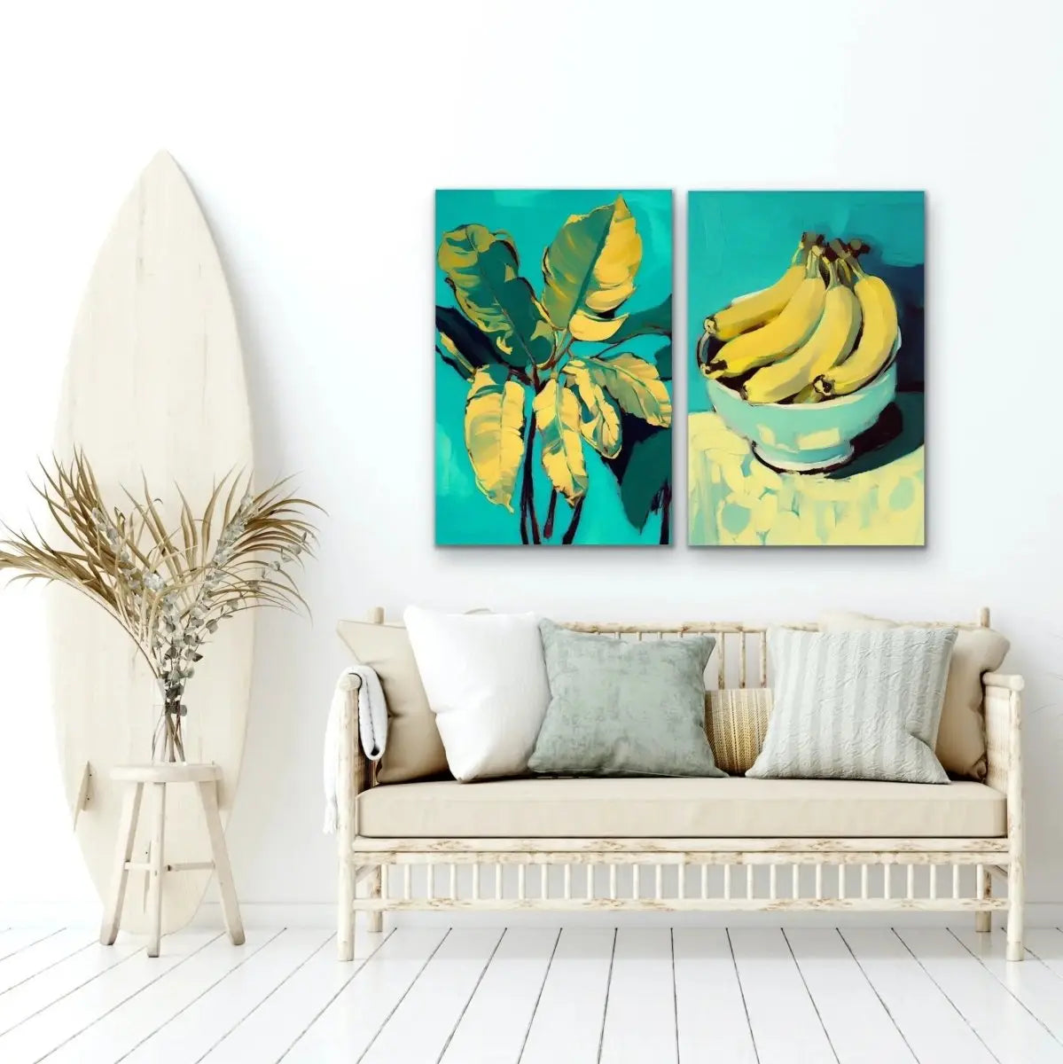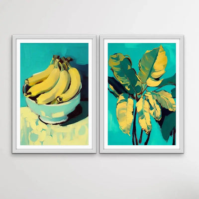Bring a splash of tropical colour to your space with this two piece print. These bright tones work perfectly with black, white or natural timber frames and will bring a beautiful, bright impact.