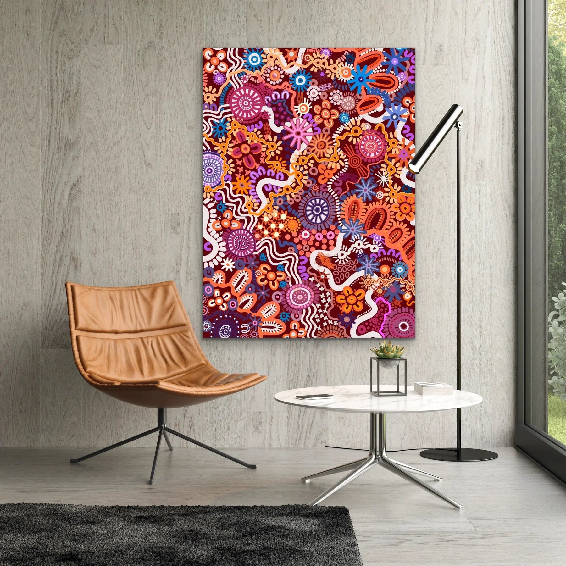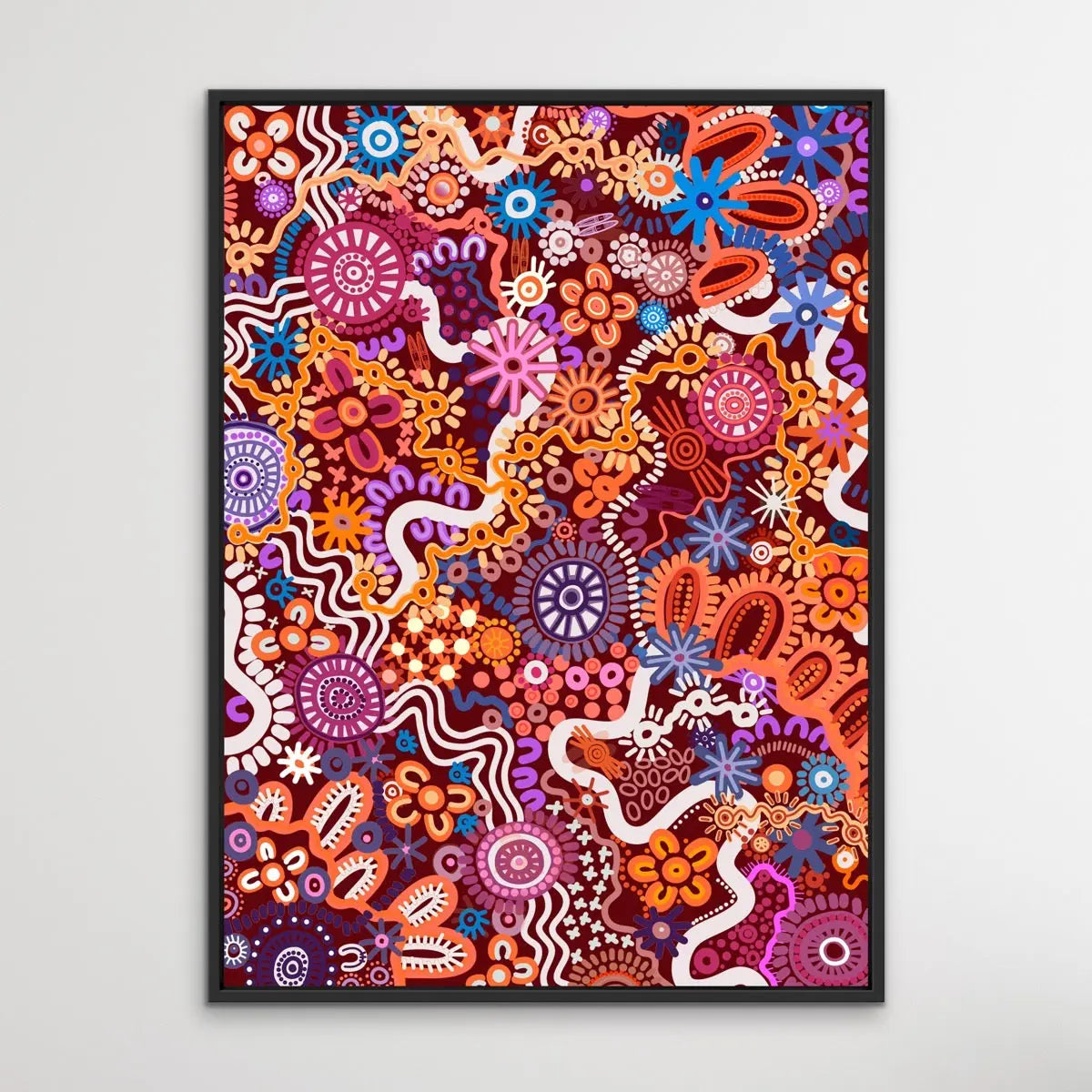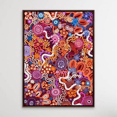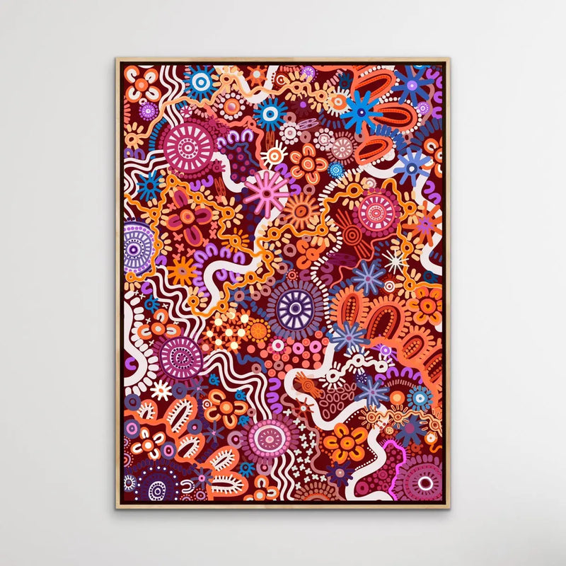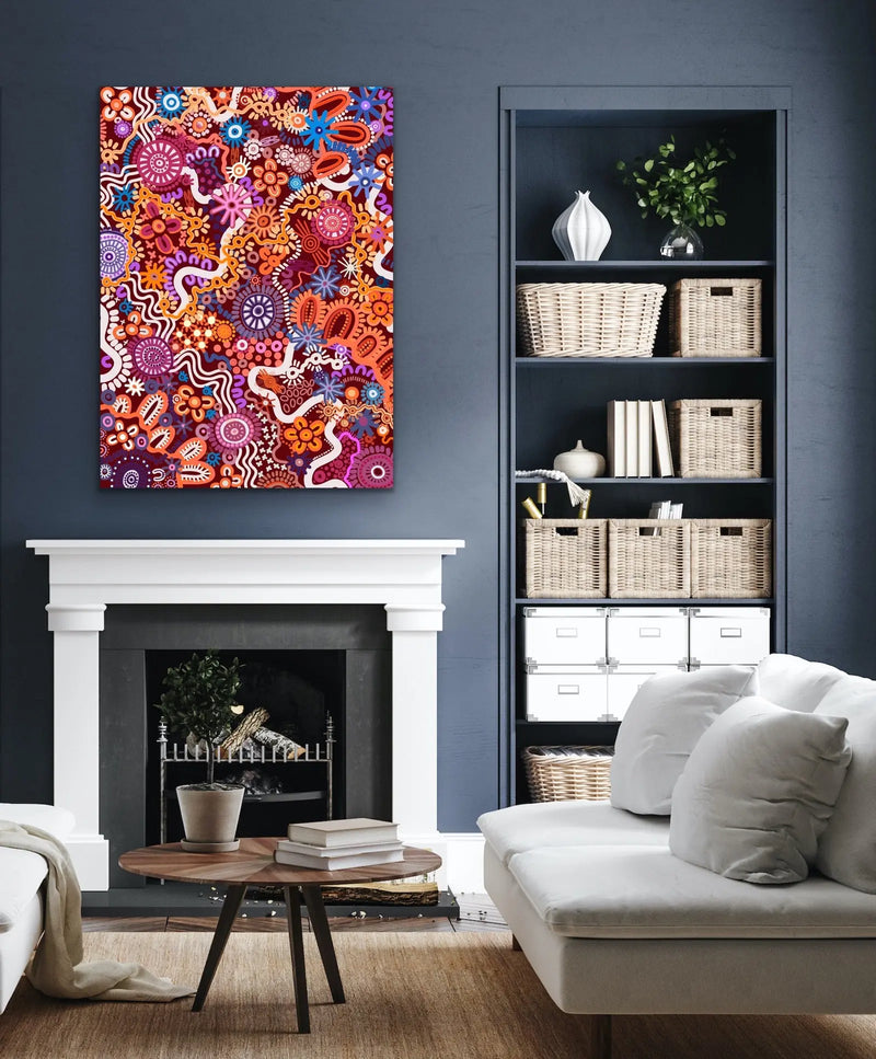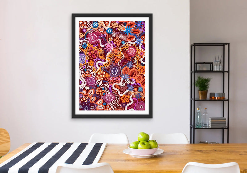 This stunning, colourful art print is by Brisbane-based Aboriginal Artist Leah Cummins.
