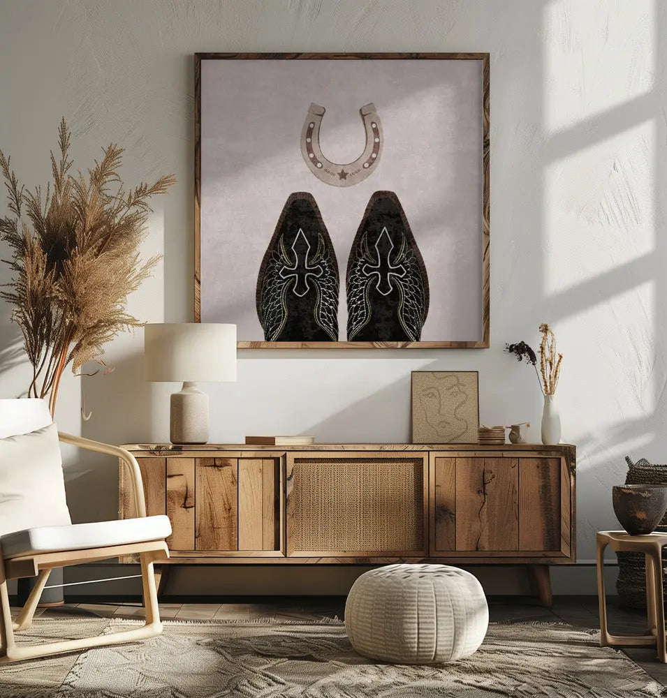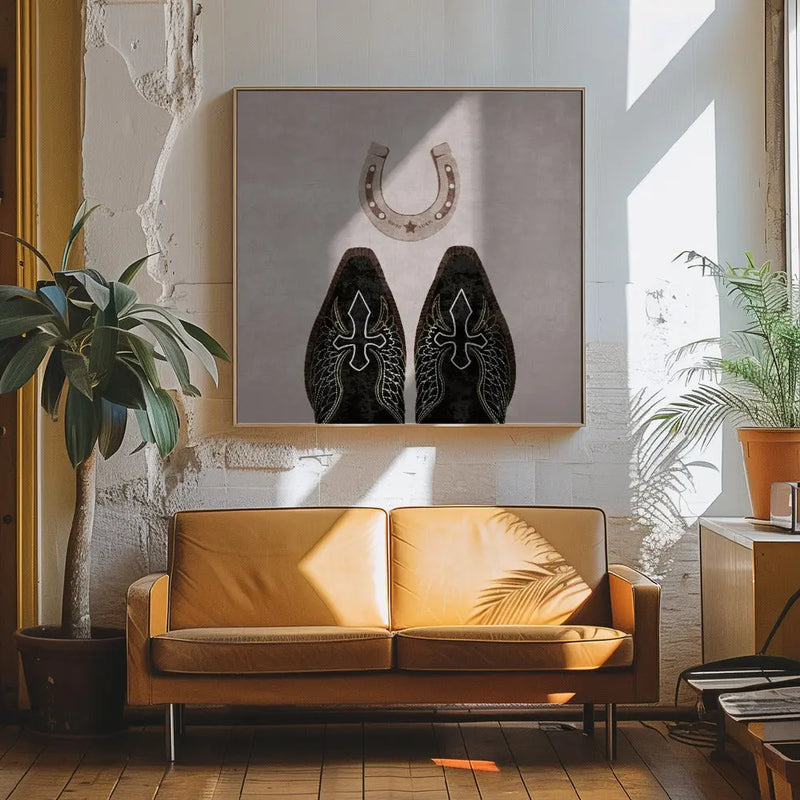 Explore our many print options for Cowboy Boots and Horseshoe by artist Emel Tunaboylu.