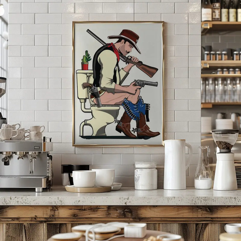 Explore our many print options for Cowboy On the Toilet by artist In The Washroom.