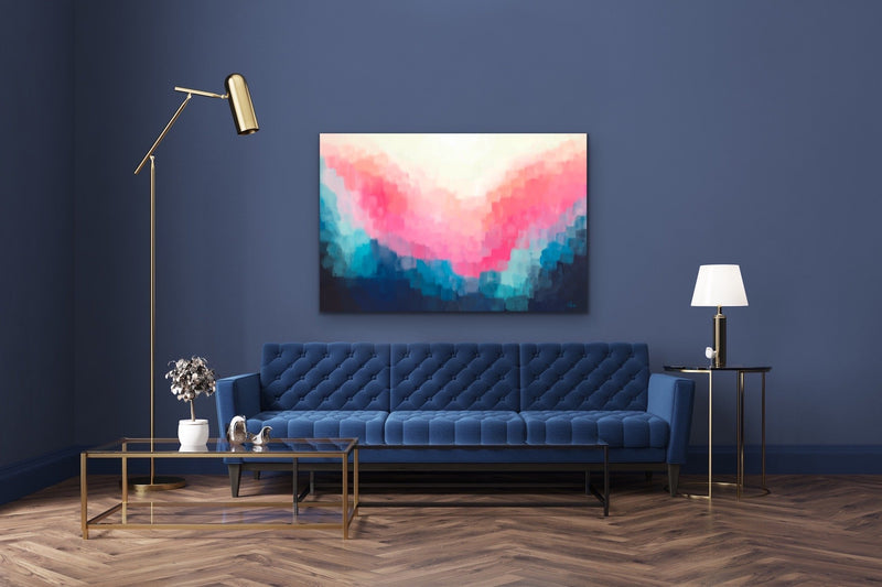 Cut Gems -Abstract Blue Pink Art Print Stretched Canvas Wall Art