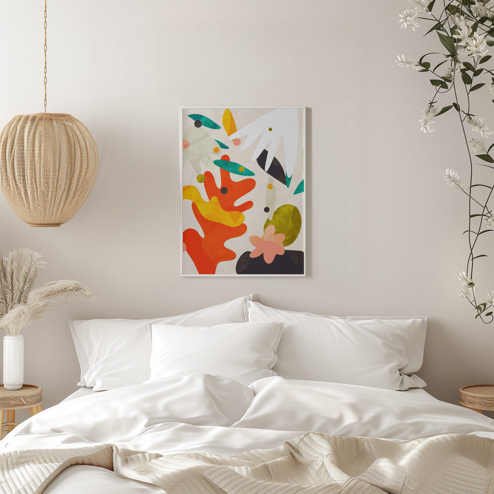 Framed Art Prints: Our framed art prints are printed onto a good quality textured art paper. A white border surrounds the design. A solid timber frame in one of four colours and a plexiglass front complete the piece.