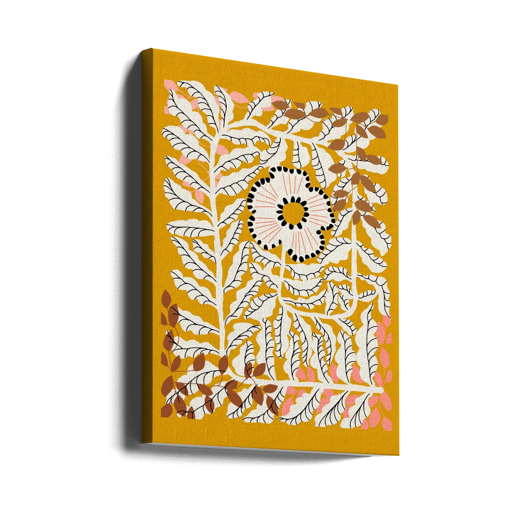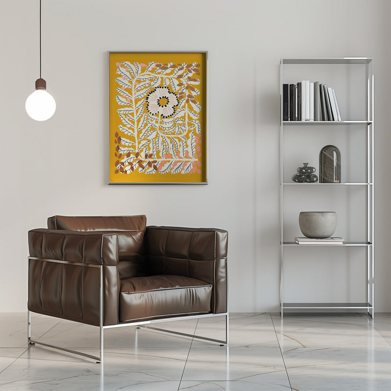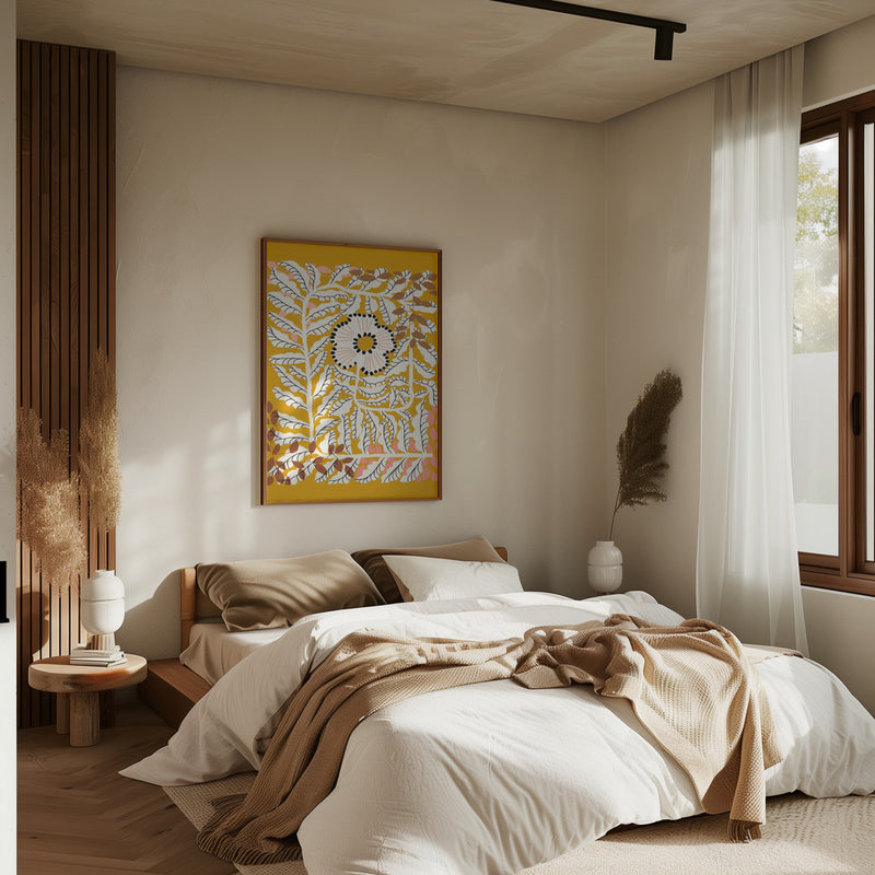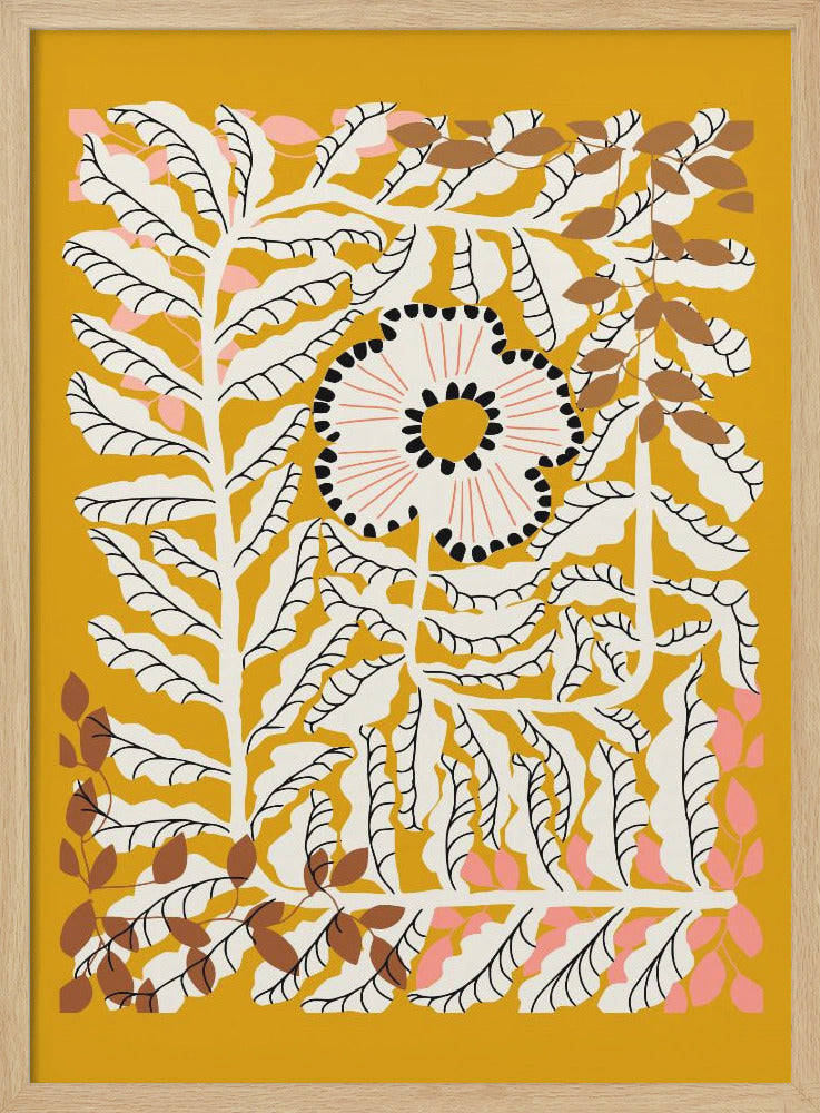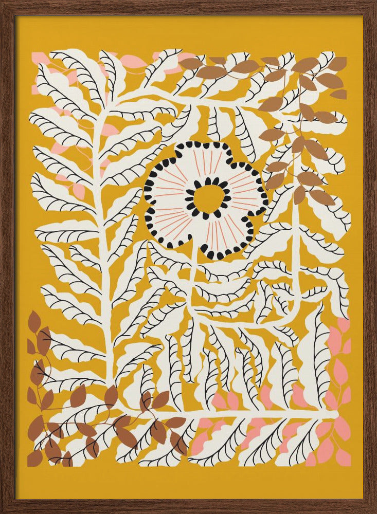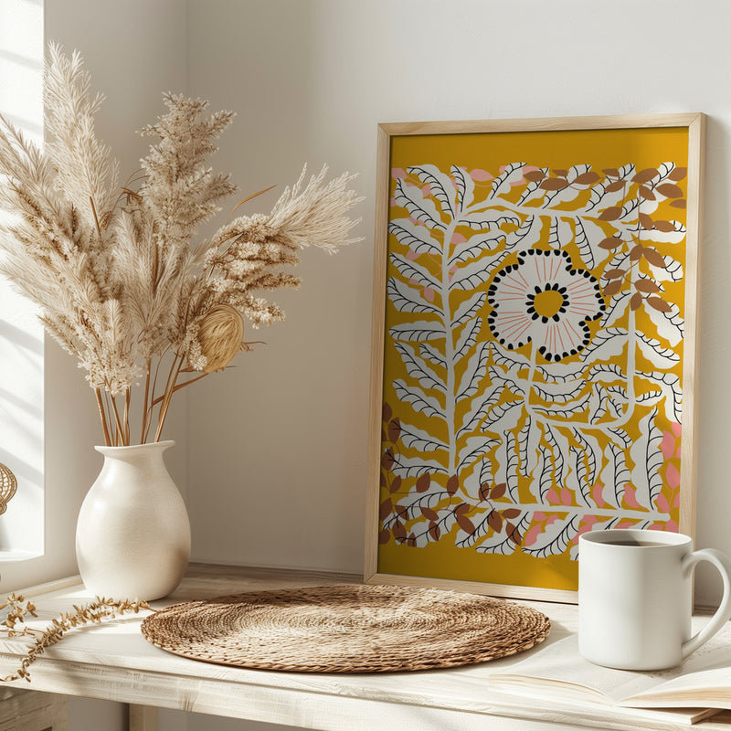 Explore our many print options for Fern leaves and flower mustard by artist Annick.