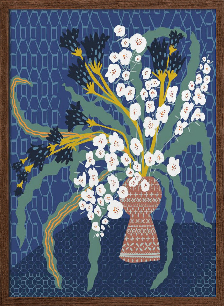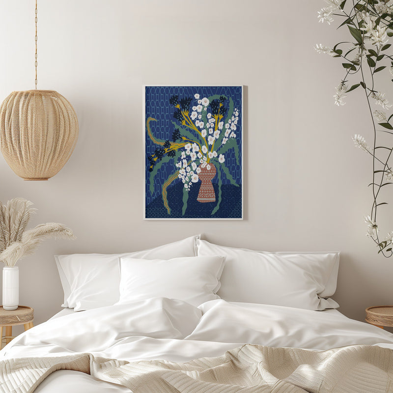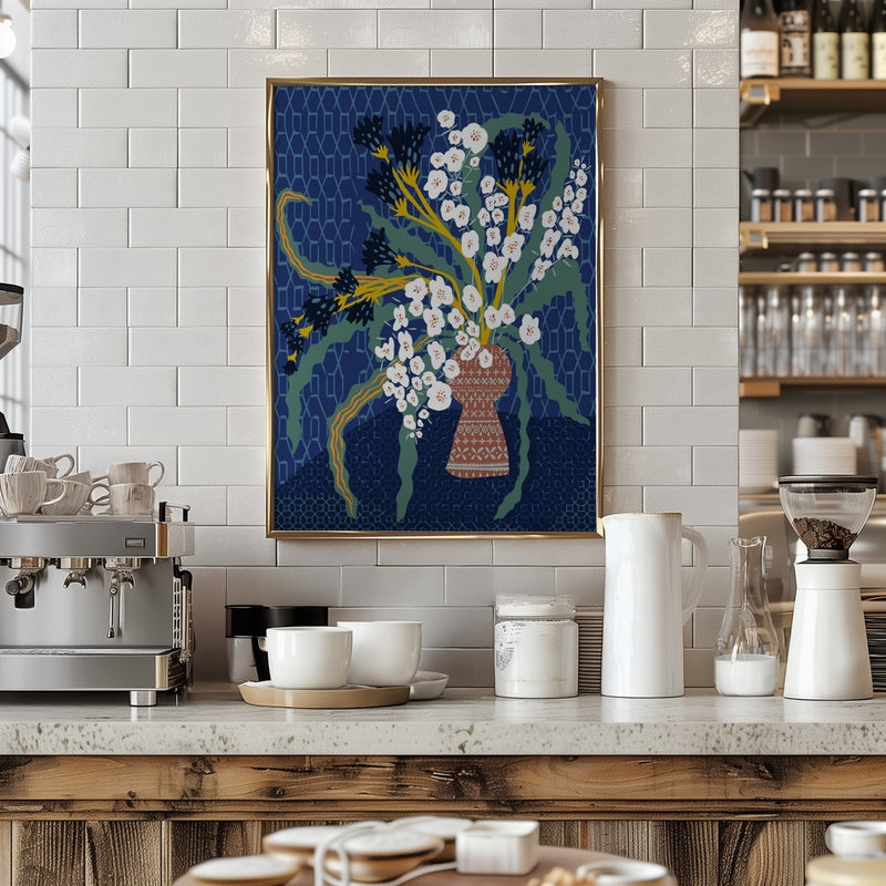 Explore our many print options for Floral Contemporary Still Life Dark Blue by artist Annick.