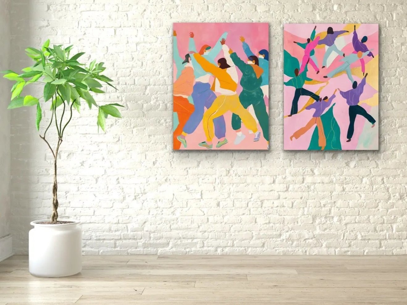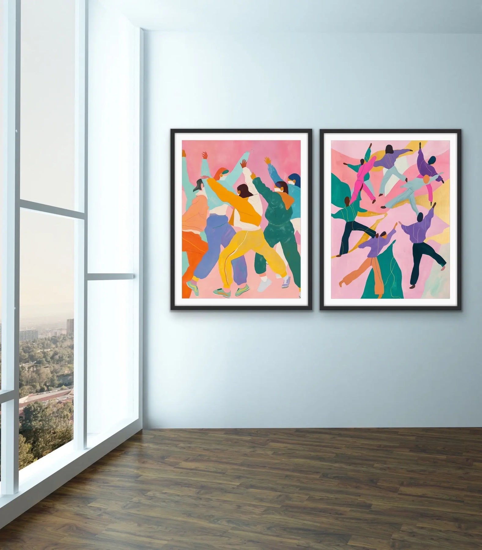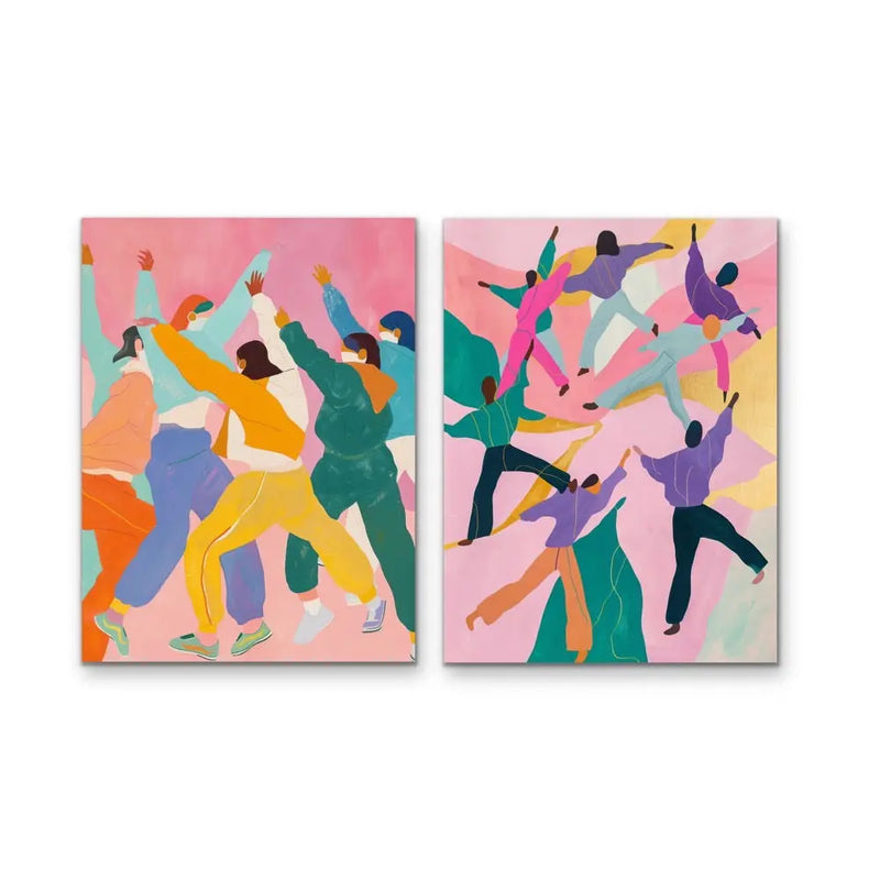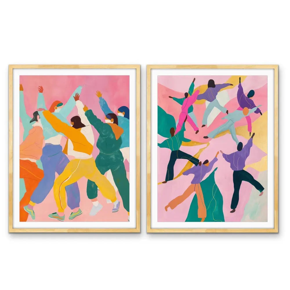 Bring  colour and movement to your space with this fun two piece print set, featuring women dancing against a pink backdrop.