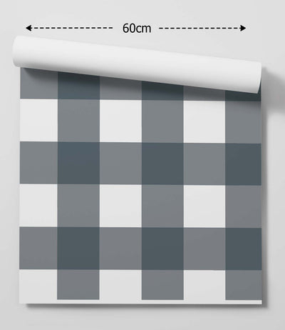 Gingham Wallpaper In 'Storm' - Blue/Grey Tartan/Plaid Removable Wallpaper