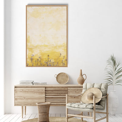 This soft piece of yellow wall art is perfect for boho home styling, featuring gentle tones and a rustic feel.