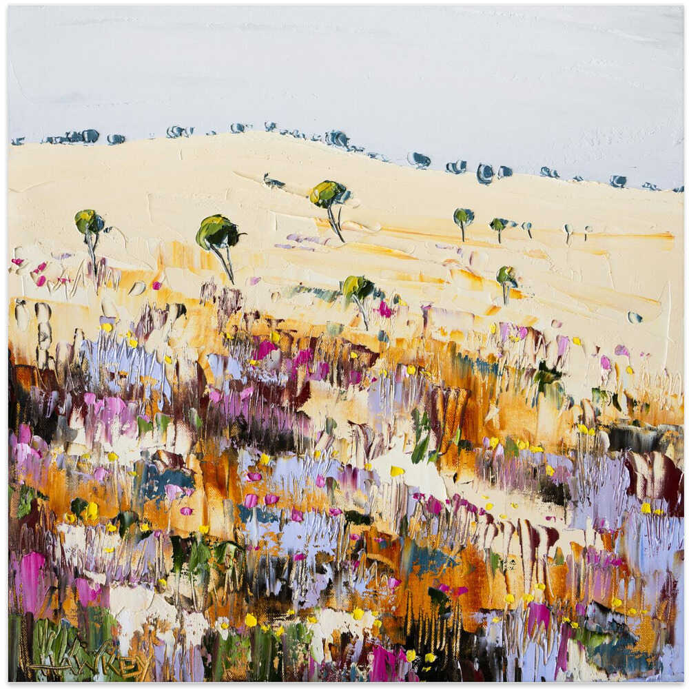 Green pastures by Angela Hawkey - Australian Landscape Square Stretched Canvas, Poster or Fine Art Print