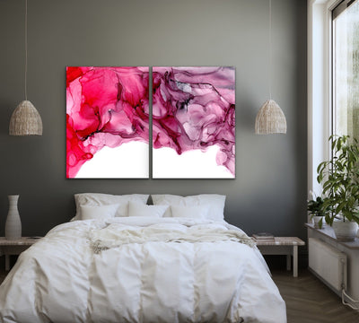 Ink Spill in Red- Two Piece Alcohol Ink Red Watercolour Canvas Wall Art Print