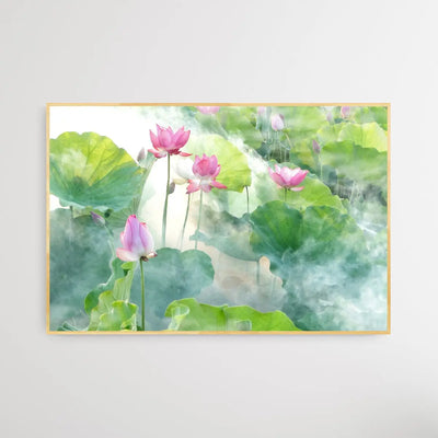 Lotus Summer - Pink Flower with Leaves Wall Art
