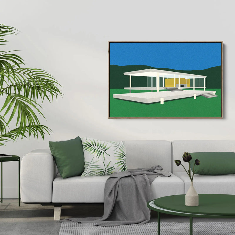 Rosi Feist's mid-century modern artwork featuring a house is a captivating blend of sleek lines and vibrant hues. Inspired by the architectural marvels of the 1950s and 1960s, this piece encapsulates the essence of modern design. With its minimalist charm and nostalgic undertones, it adds a touch of sophistication to any space, evoking a sense of timeless elegance.