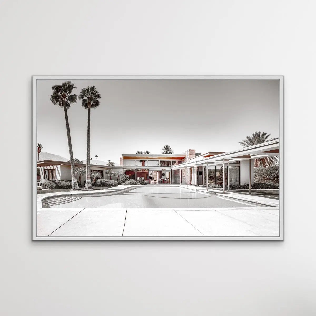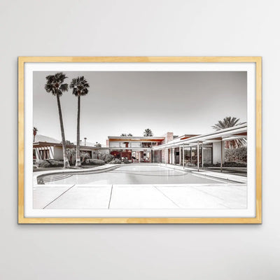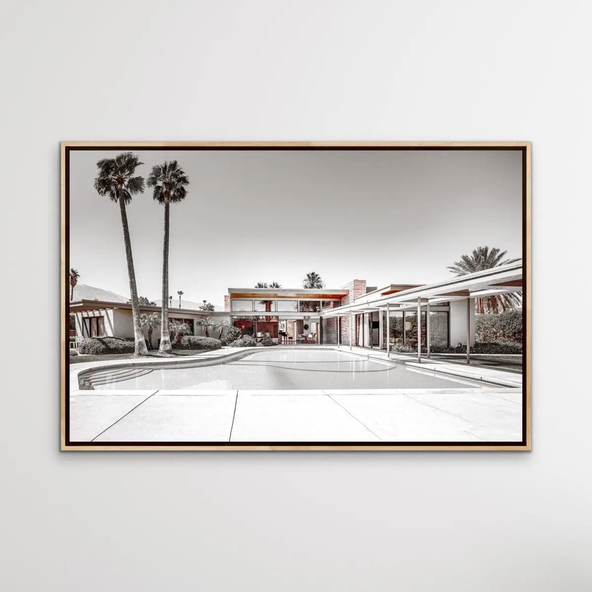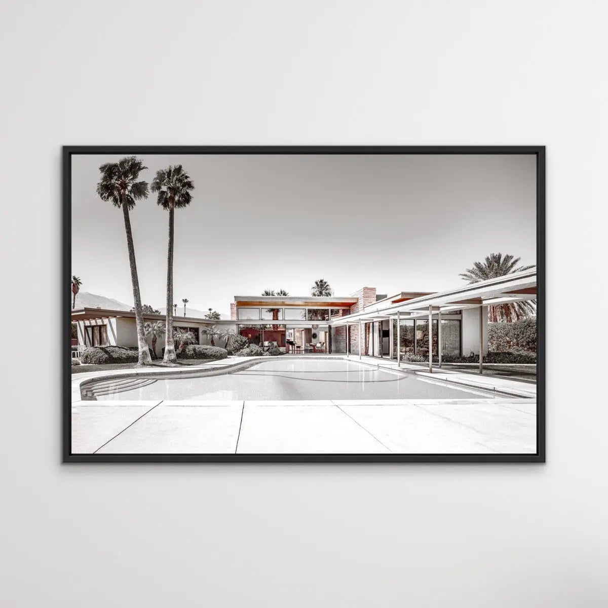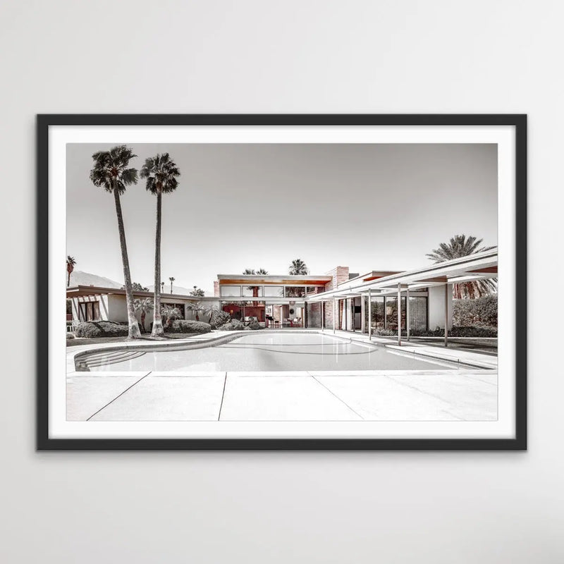 This beautiful vintage-inspired print shows a striking mid-century home in tones of black, white and copper.
