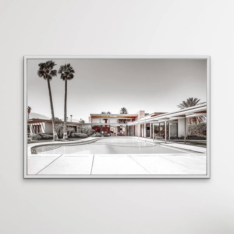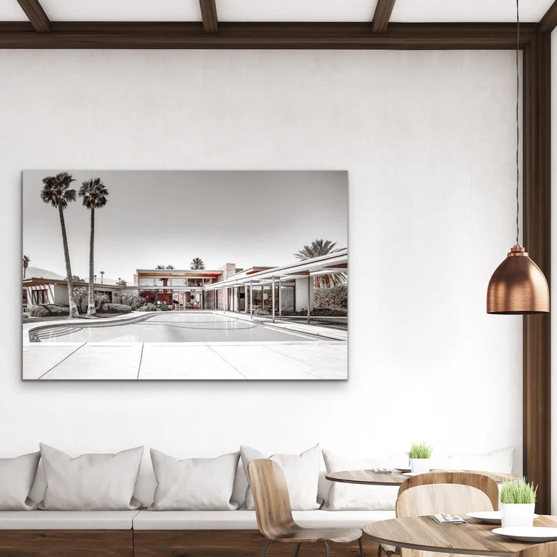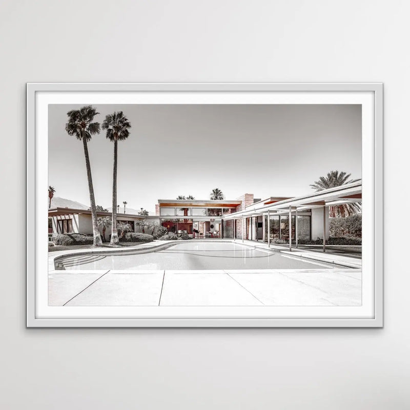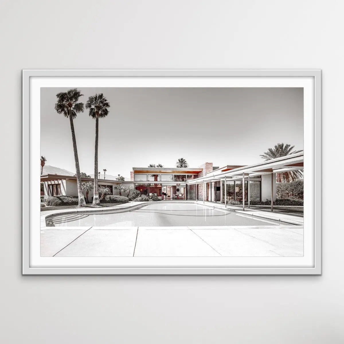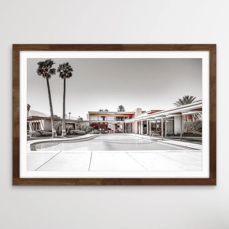 This beautiful vintage-inspired print shows a striking mid-century home in tones of black, white and copper.