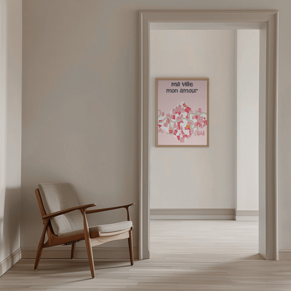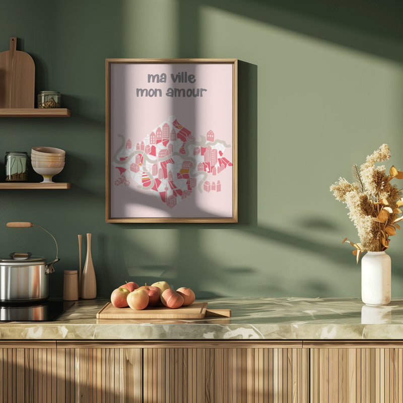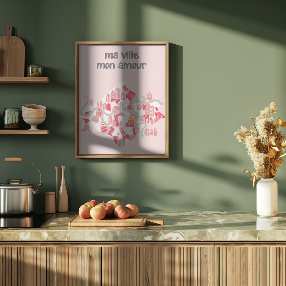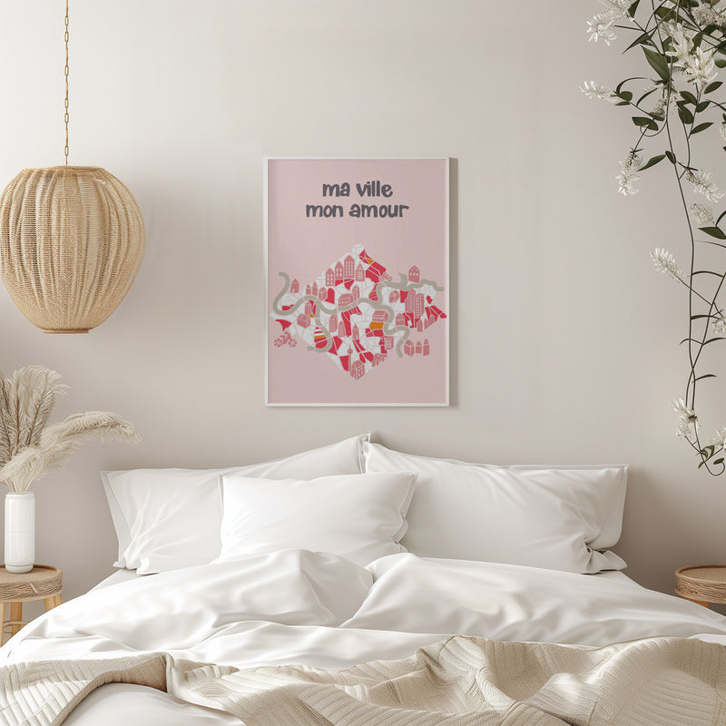 Explore our many print options for ma ville mon amour; City life collection pearl pink by artist Annick.