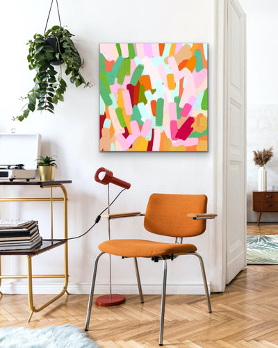 Marigold - Abstract Pink Orange and Green Floral Canvas Artwork Wall Art Print