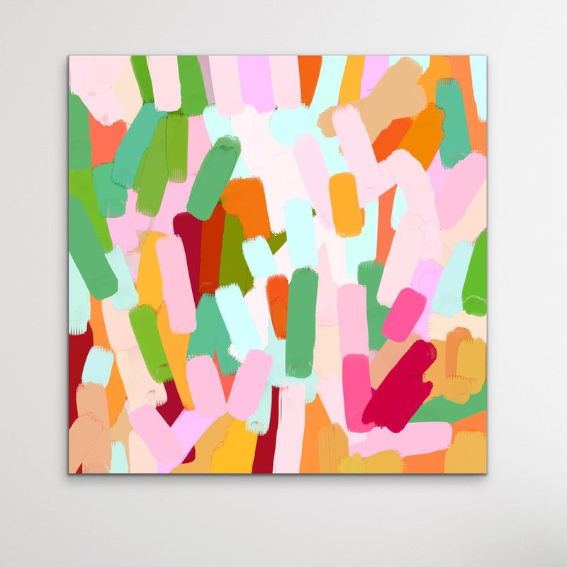 Marigold - Abstract Pink Orange and Green Floral Canvas Artwork Wall Art Print - I Heart Wall Art