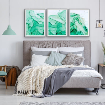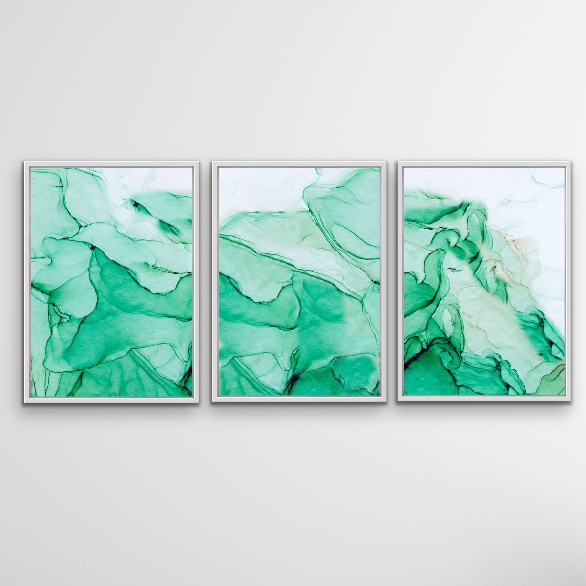 Gorgeous and very on-trend, this three piece collection ofgreen alcohol ink prints are simple perfection.This fresh looking collection is perfect for contemporary home styling.
