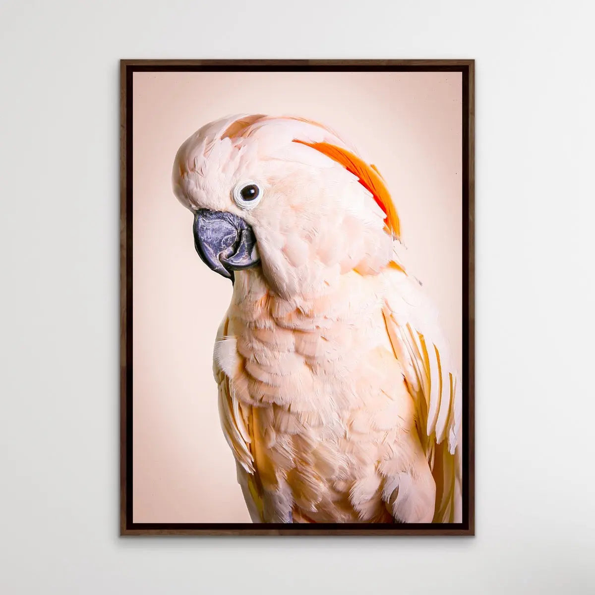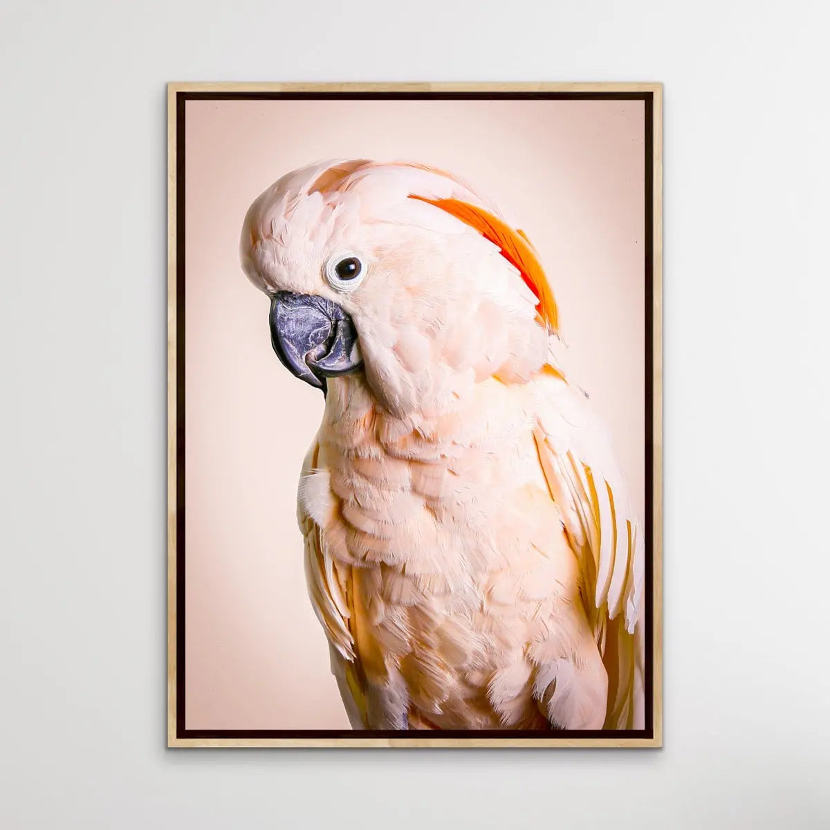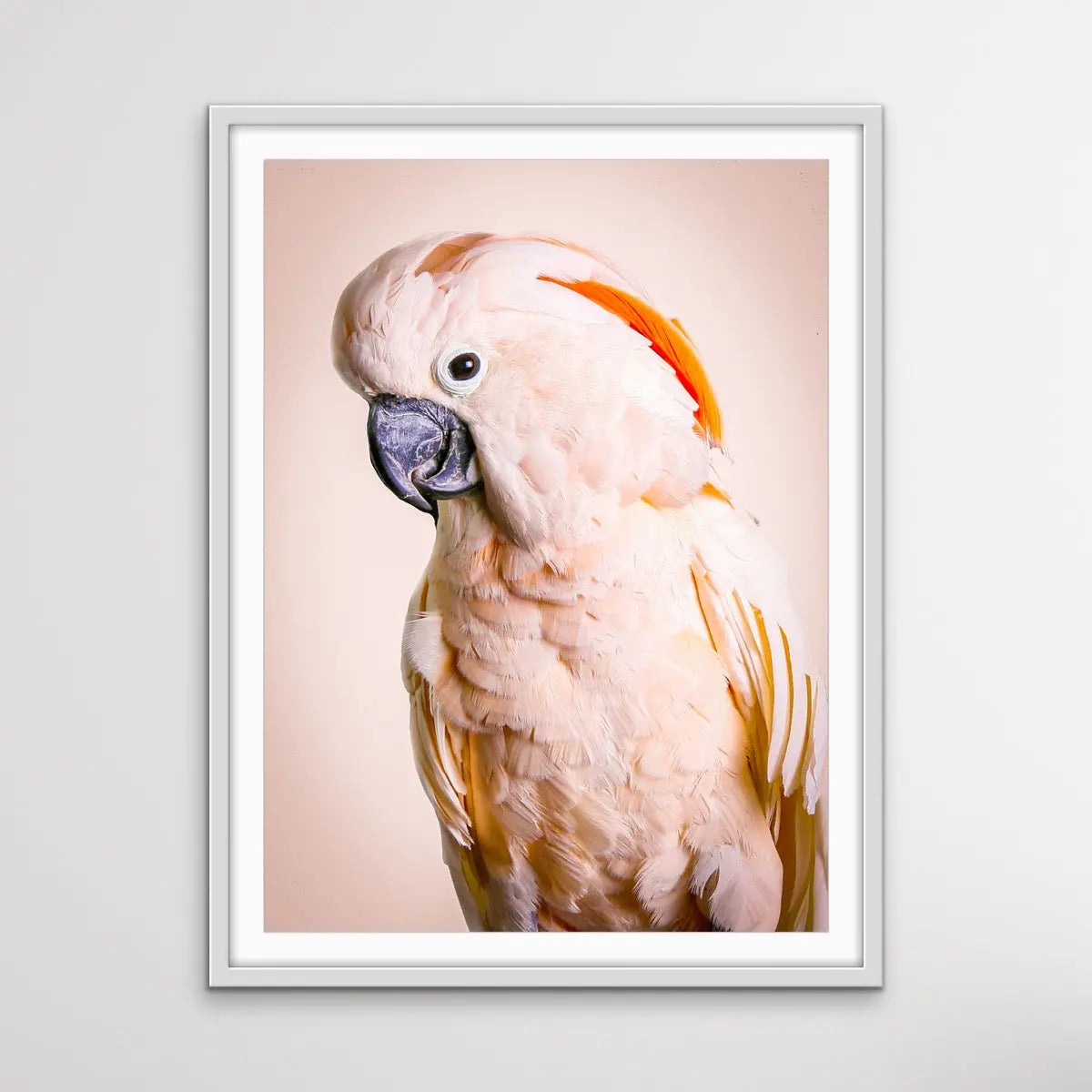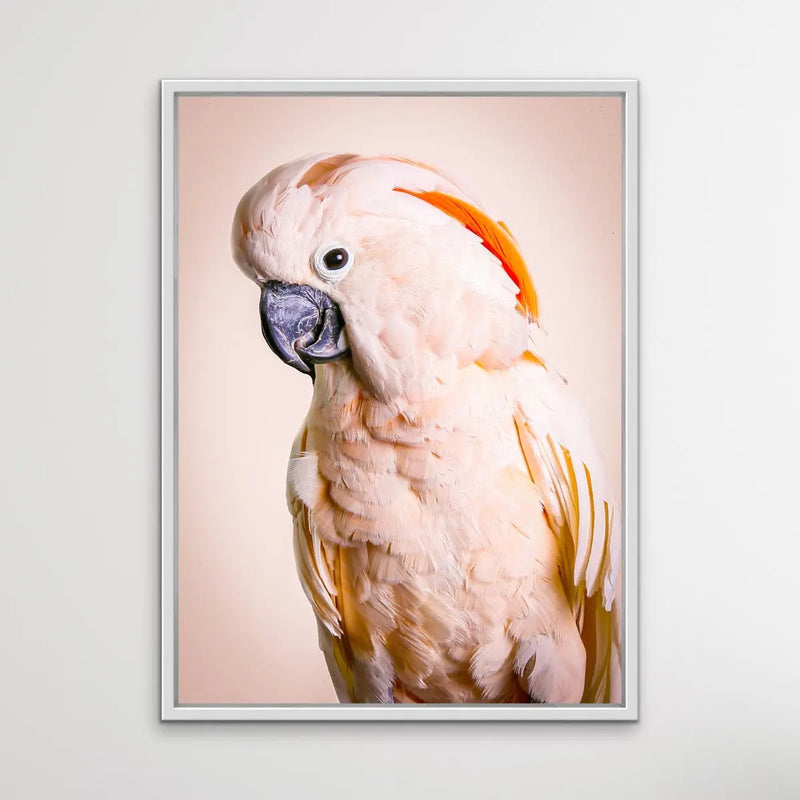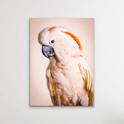 This cheeky and beautiful Moluccan cockatoo has perfect peach-tones. He's perfect for bringing a sweet touch of pink to your space.