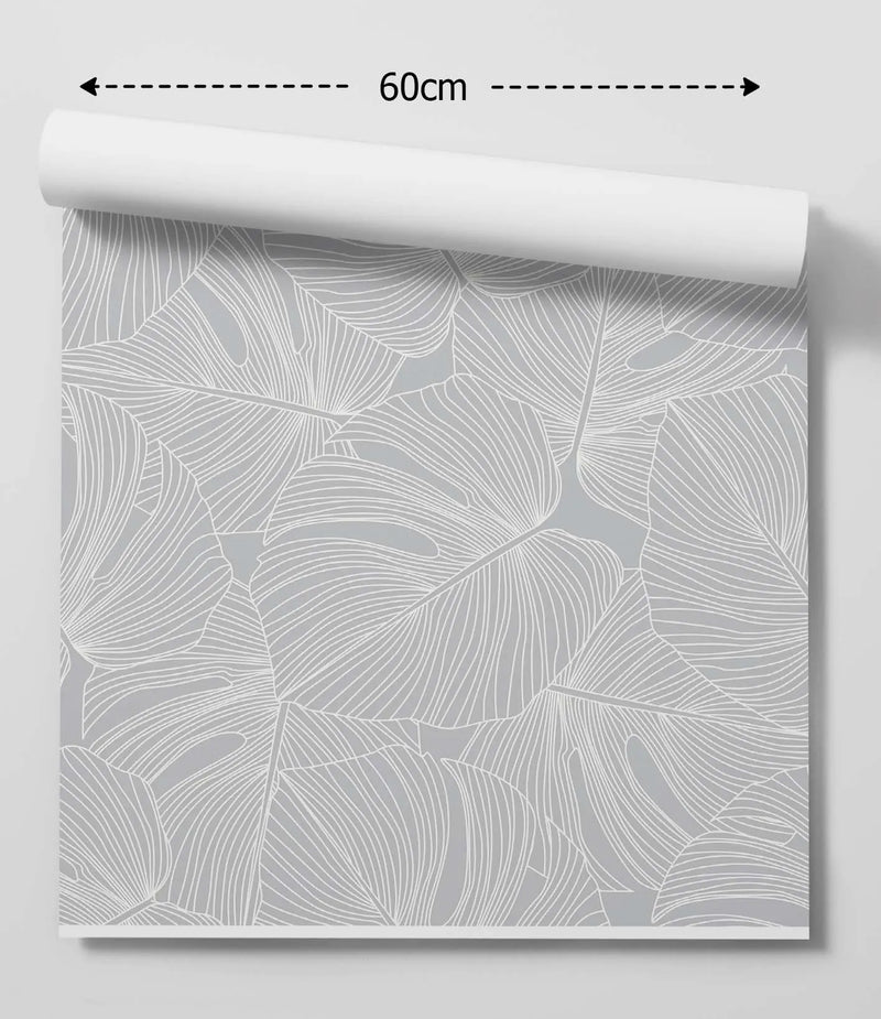 Monstera Line Wallpaper - Light Grey and Off-White Monstera line Art Removable Peel and Stick or Soak and Stick Wallpaper
