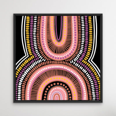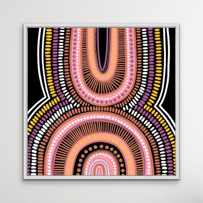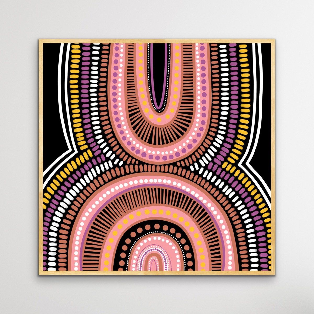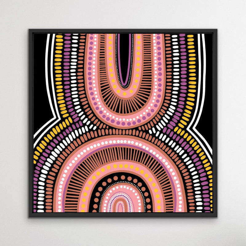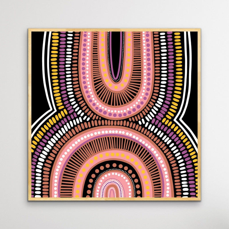 Framed Art Prints: Our framed art prints are printed onto a good quality textured art paper. A white border surrounds the design. A solid timber frame in one of four colours and a plexiglass front complete the piece. Learn more here.
