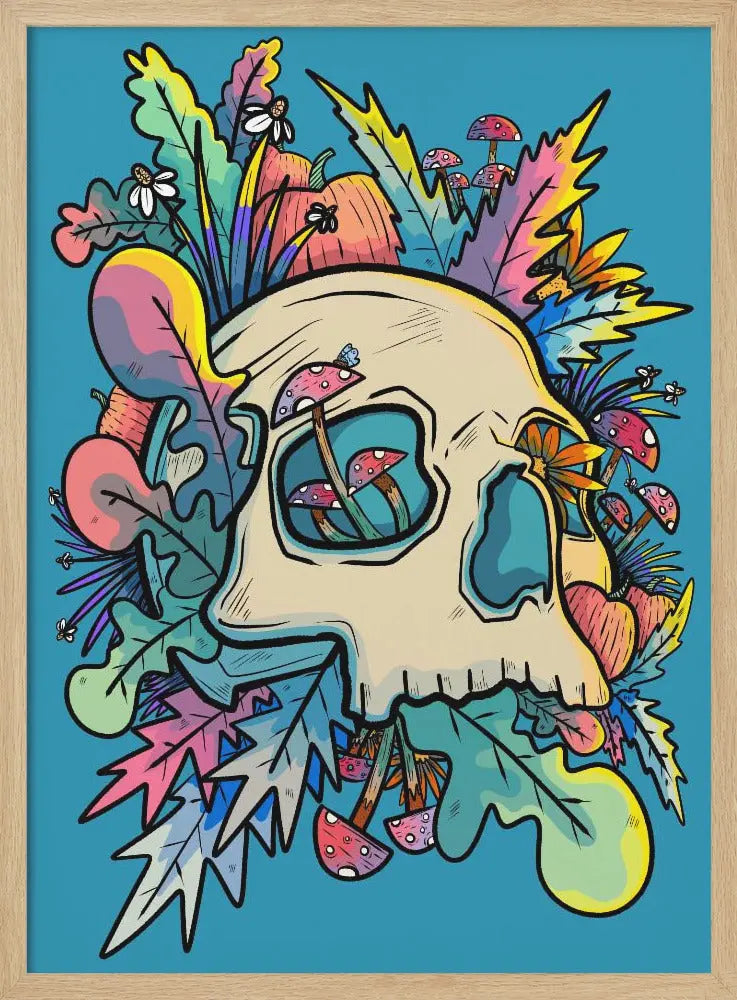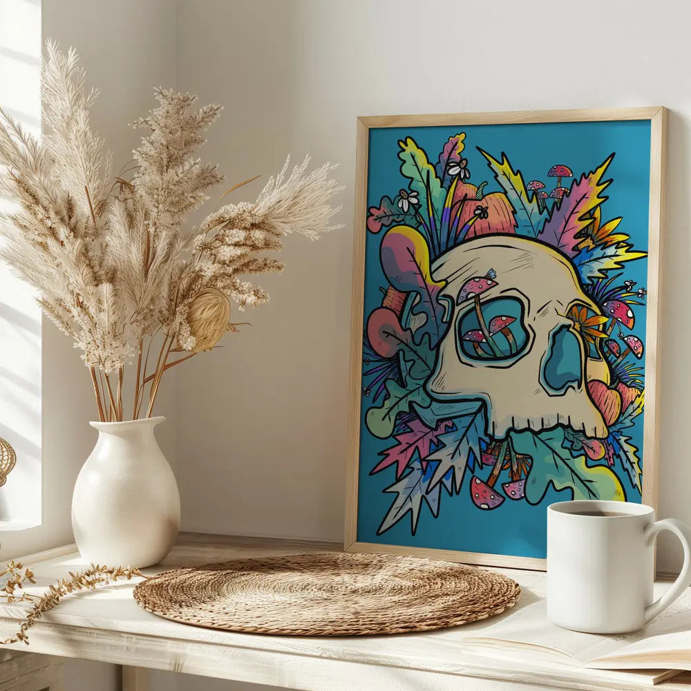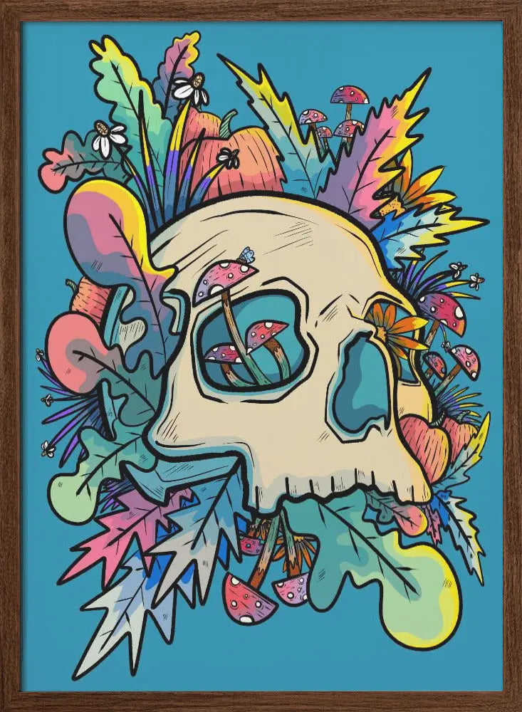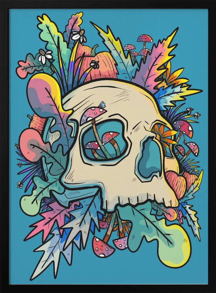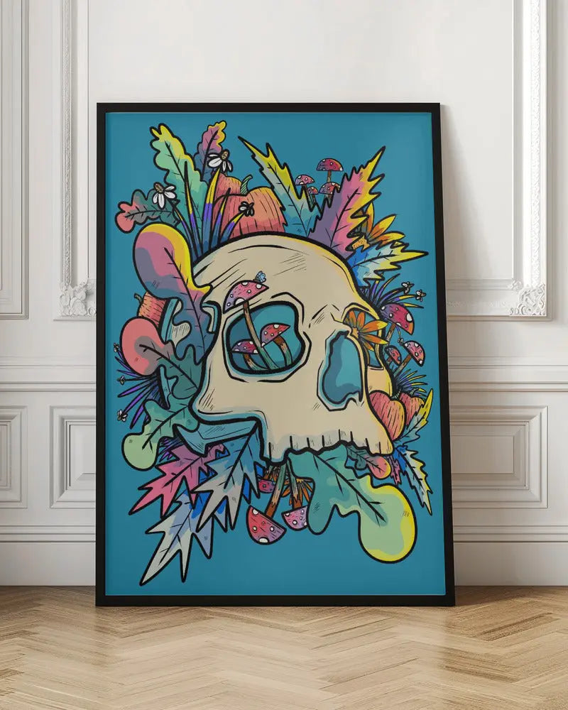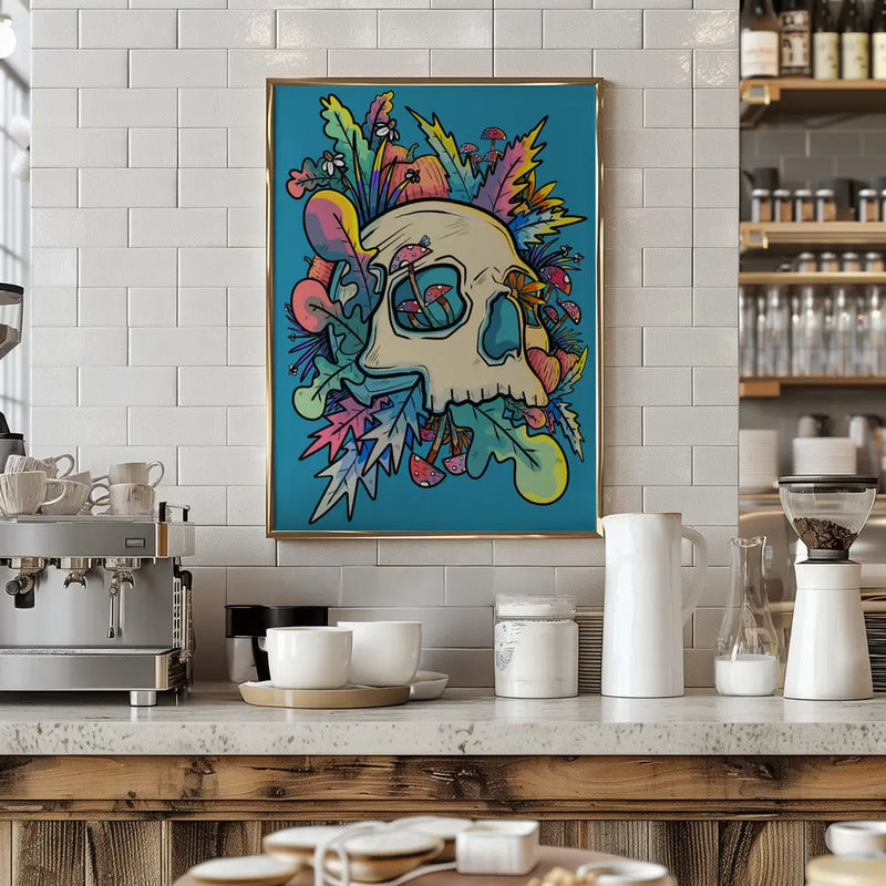 Explore our many print options for Mushrooms and the Colourful Skull by artist Stephen Wade.