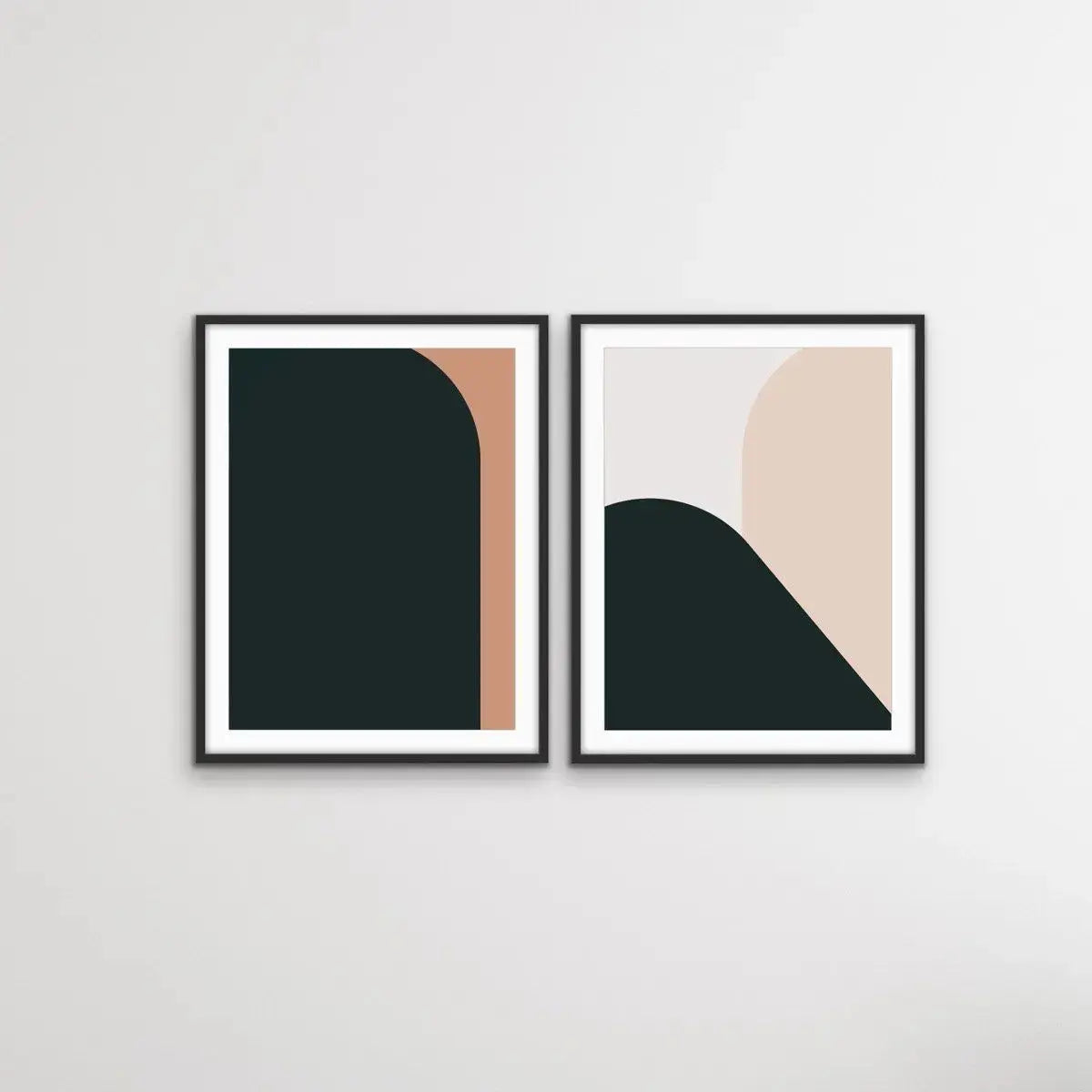 A Magic Place - Two Piece Square Abstract Landscape Pink and Green Print Set