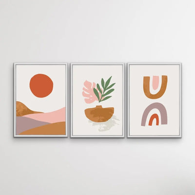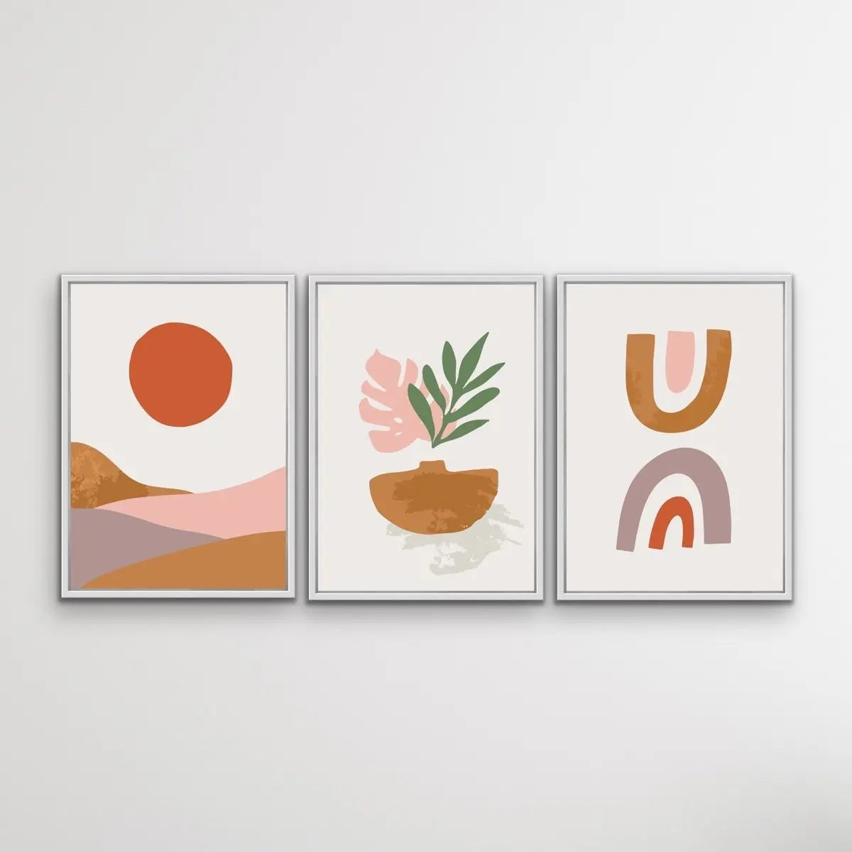 Gypsy Home - Three Piece Boho Landscape Ochre Lilac Pink Geometric Painted Wall Art Print s Triptych I Heart Wall Art Australia